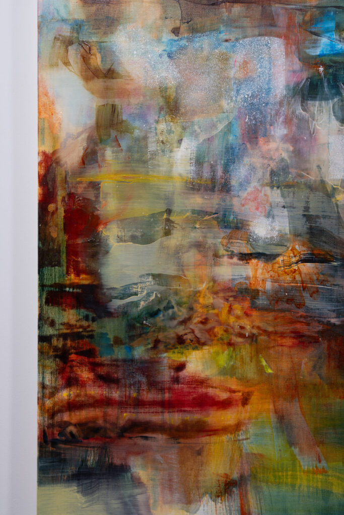 2024年11月には、ソウルで個展《In vibrant hues, their voices laid》を開催。韓国の市場という密度の高い空間に交錯する視線や声を、女性たちの働く姿とともに表現。「女性」という存在が中心に据えられてきたLeeさんの作品。本展では、その主題から一歩距離を取り、より「空間」そのものに焦点を当てた絵画表現へと展開。Leeさん本人が初期より抱いてきた「人のいる場所」への根源的な興味と地続きの作品で構成されています。