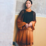 トップス¥137,500 スカート¥71,500(共にリヴィアナ コンティ/イザ)ピアス¥308,000(片耳)(オー/ハルミ ショールーム)パンプス¥186,200(セルジオ ロッシ/セルジオ ロッシ ジャパン カスタマーサービス)