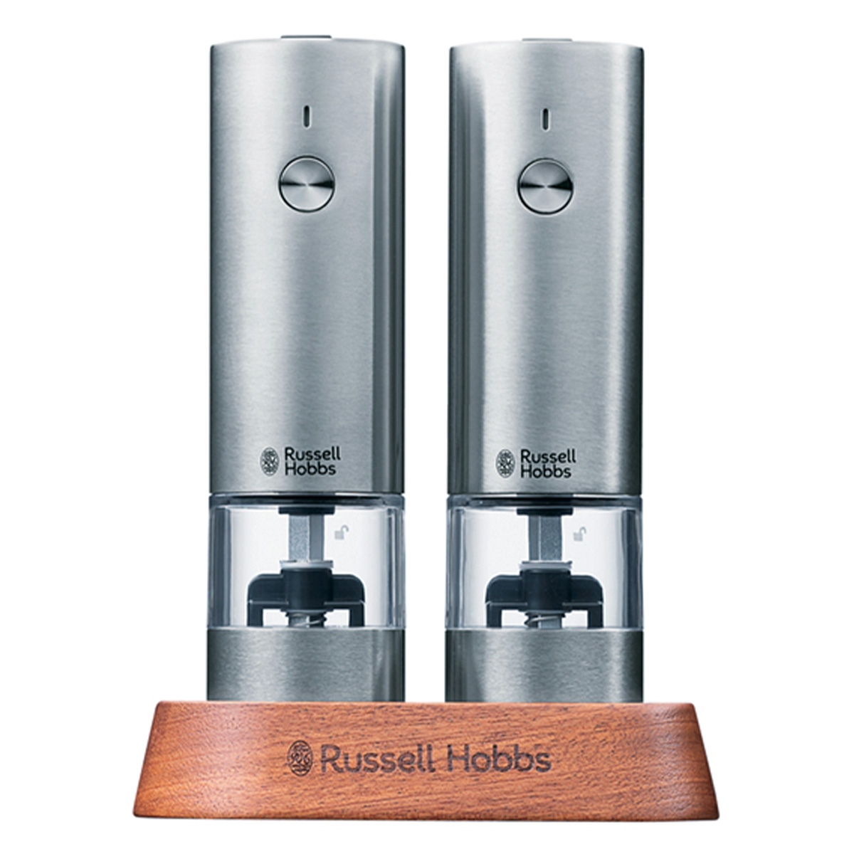 片手のワンプッシュで挽ける簡単操作。電池不要のUSB充電式です。充電式ミルソルト&ペッパーミニ¥8,800(ラッセルホブス/大石アンドアソシエイツ)