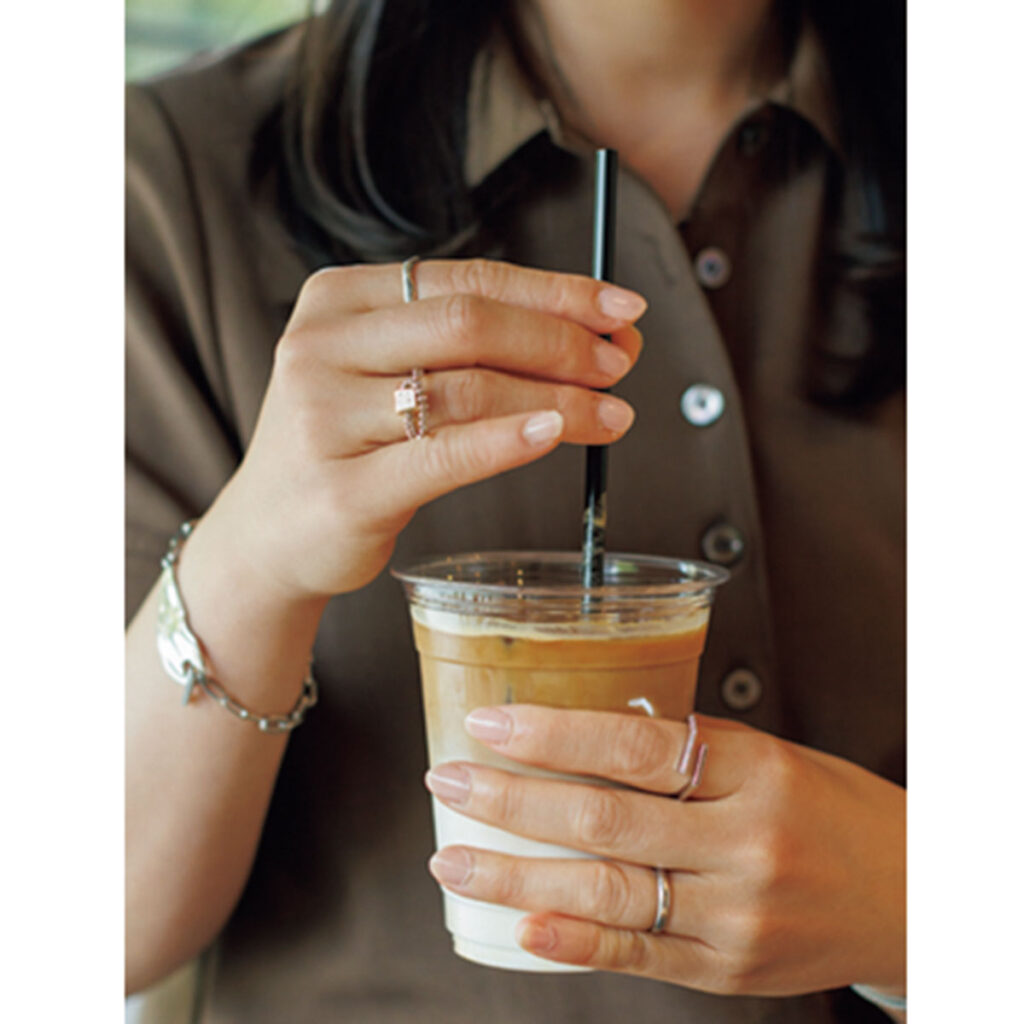近所のおしゃれカフェでリモートワークする時は、いつものワンマイルコーデよりも少し気持ちがピシッとするアクセやシューズをプラスした、リラクシーなスタイルに。