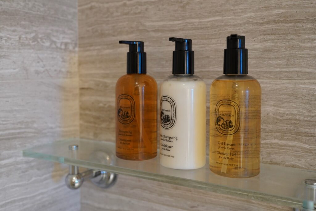バスルームは大理石を贅沢に使用した上質な空間で、独立したバスタブとシャワールームを完備。アメニティには、フランスのラグジュアリーフレグランスブランド「Diptyque(ディプティック)」が採用されています。