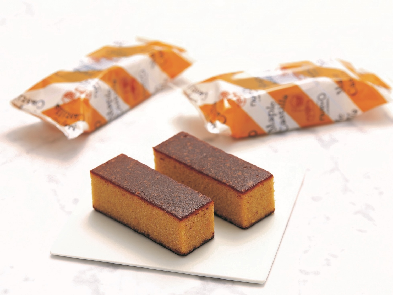 卵・砂糖・小麦・水飴だけのシンプルなカステラは、卵のコクがおいしさの秘密。メープルシロップを加えることで、しっとり濃厚なメープルの香りが口いっぱいに!贅沢感が味わえるスティックタイプの焼き菓子です。