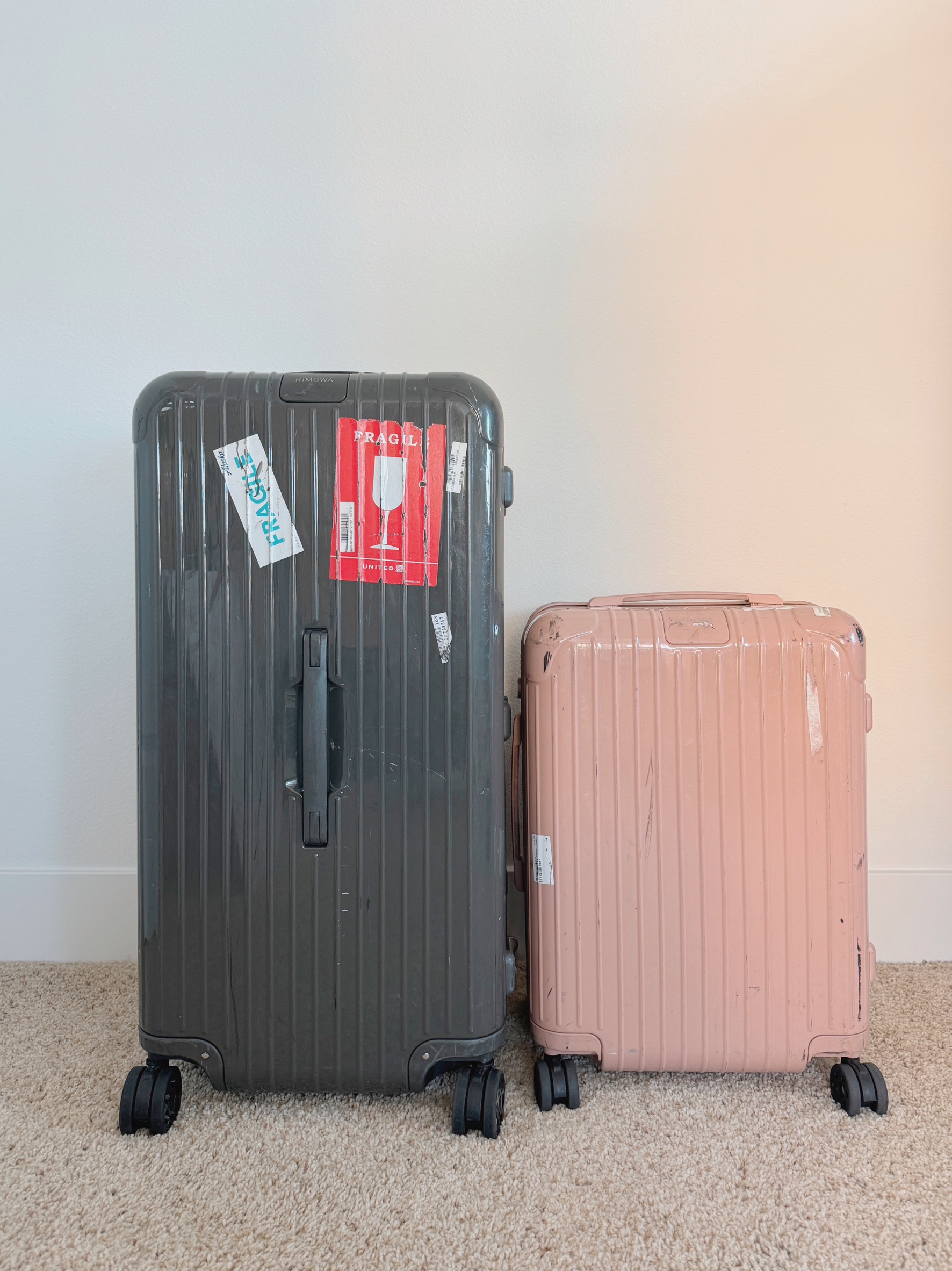 「リモワはカラーバリエーションが豊富で、色が可愛いのはもちろんですが、なんと言っても容量がたっぷりあるところが魅力。服を着るために旅している、といっても過言ではない私にとって、洋服をたくさん持ち運べる大容量なスーツケースはマスト条件。特にトランクプラスは、深さがあるタイプなので、箱物やバッグ類、ハットなんかも楽々入れられるので一番使っています! エッセンシャルは、ちょっとした短期旅行に便利なサイズ感です」