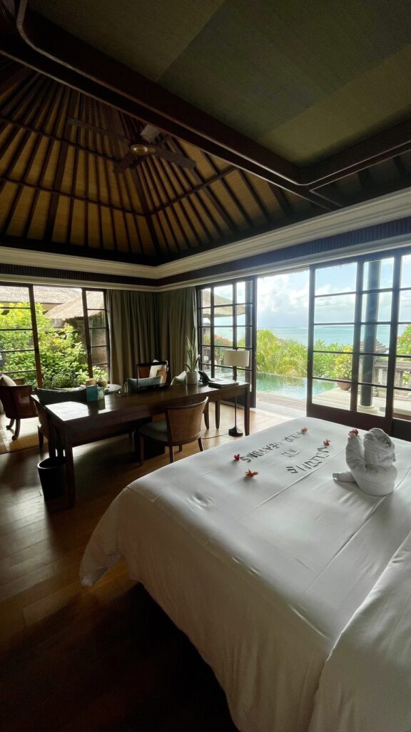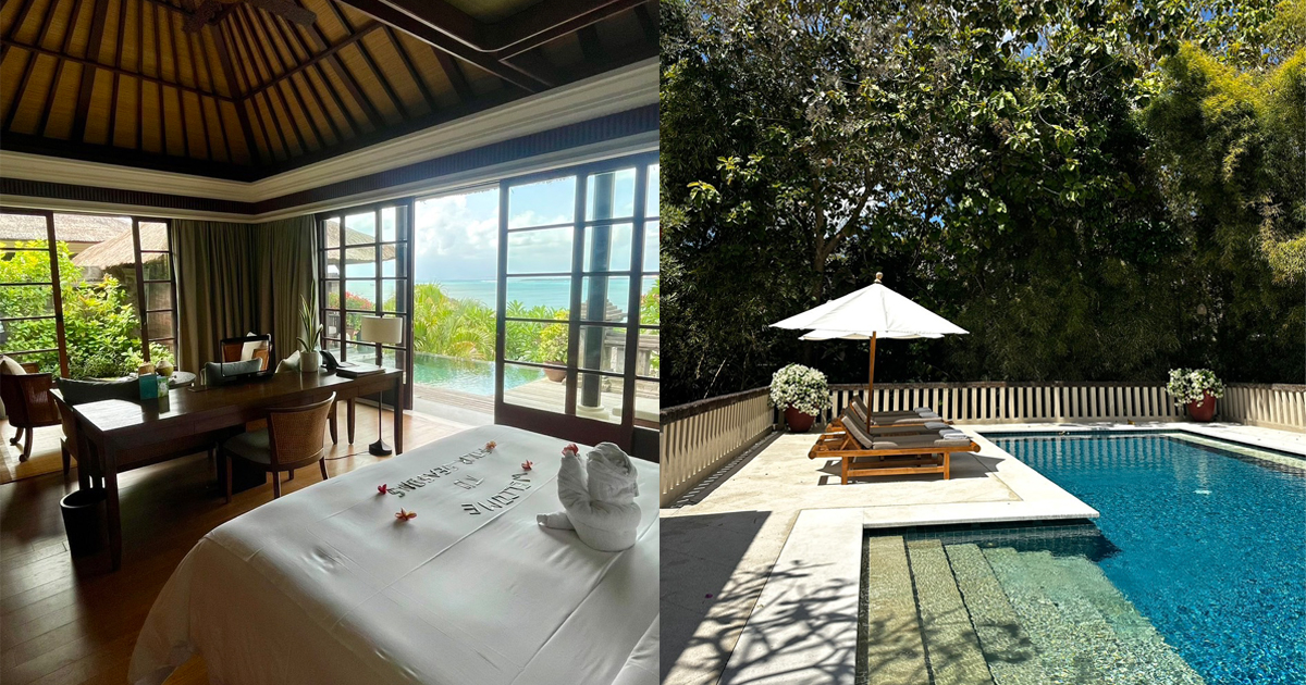 アマン ヴィラ アット ヌサドゥアは、各ヴィラにプールやバーカウンター、中庭、部屋が全て揃っているので、完全プライベート空間を楽しめます。とても静かな環境の中、自然の音を聞きながら穏やかに過ごす時間は、まさに至福。プライベートビーチもあり、専用コンシェルジュがすべての用意をしてくれるのがよかったです。