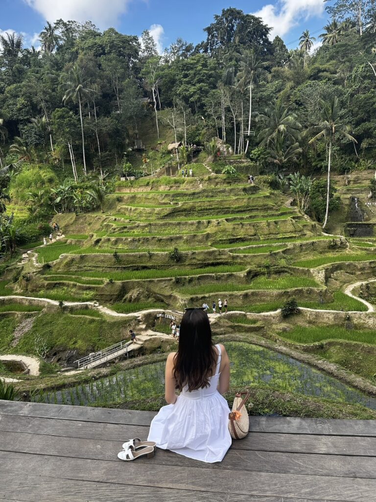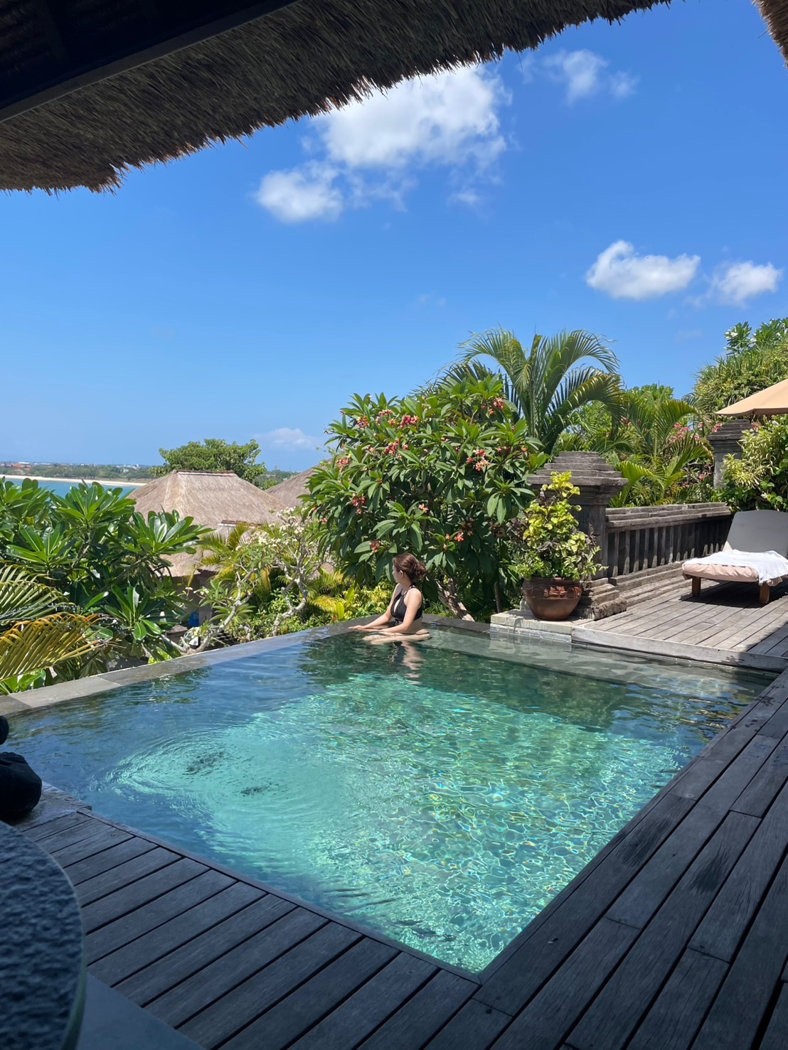家族で宿泊したのですが、プライベート空間でプールも好きな時に入れるので、ほぼ毎朝毎夜プールを楽しみました。映画を見たり、バーカウンターでお酒を飲んだり、中庭でBBQを楽しんだりも。また、海沿いでのゴルフ、人気観光地・ライステラスの絶景、インドネシアの伝統衣装体験も思い出に残っています。