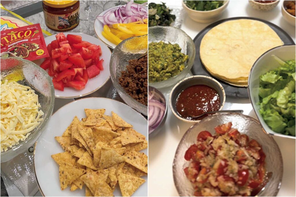 「近所に引っ越してきた友人夫婦と引っ越し祝いパーティ!各々好きな具材で食べられるので人数の多いパーティをする時はタコス率が高めです。コロナビールで乾杯は必須」