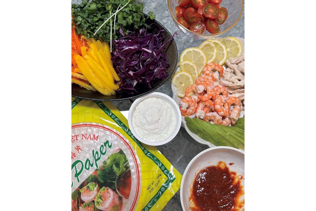 「ファーマーズマーケットで新鮮な野菜を購入できたので、友人宅で生春巻きを。ポイントは明るい色の野菜をたっぷり使うこと♡準備に時間がかからないし、トッピングに個性が出るので楽しかったです」