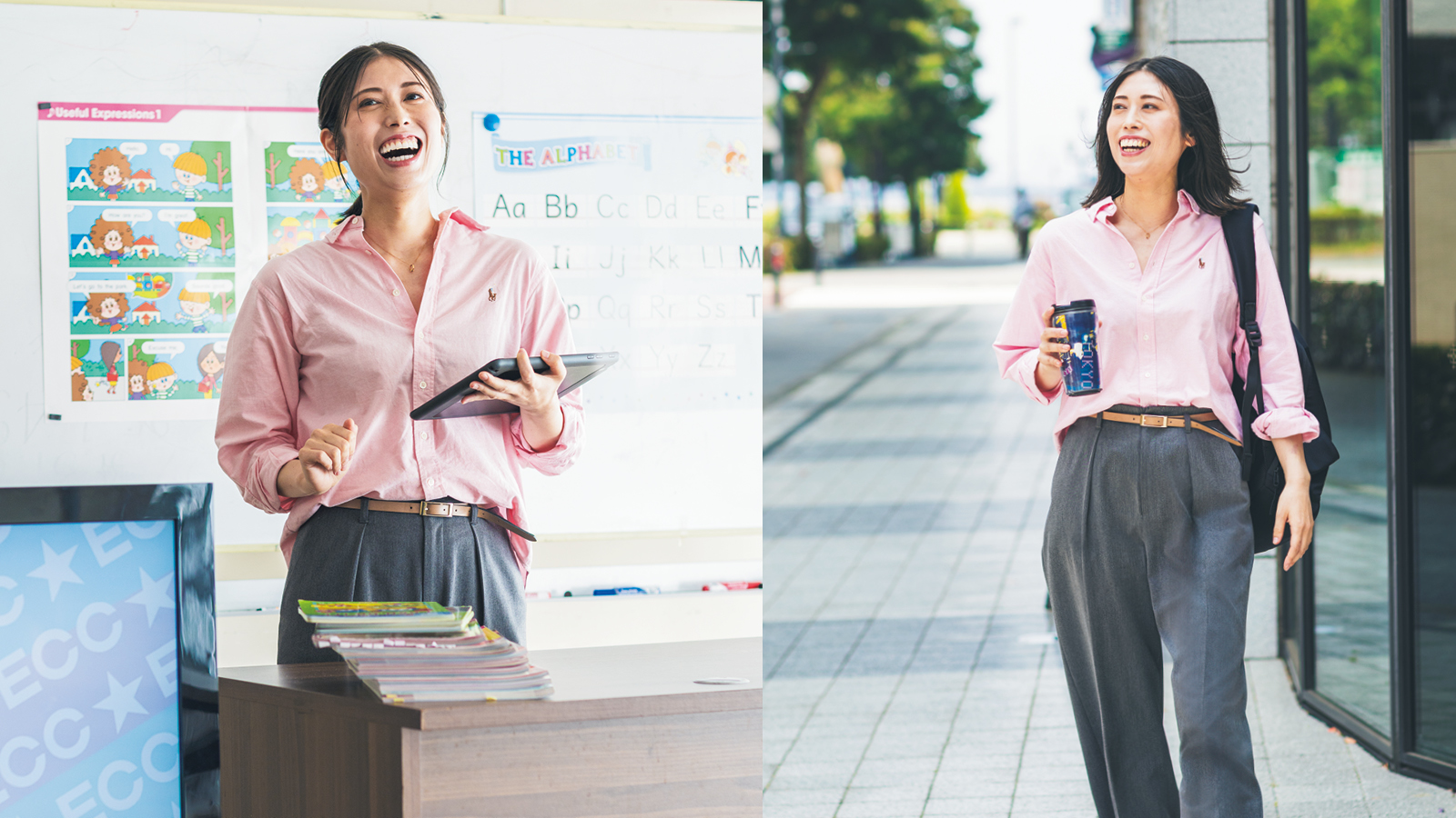 今の目標は、英語教育を通じて子どもたちの世界を広げるために、できるだけ長くこの仕事を続けること。ECCの先生になる前に結婚し、転職を応援してくれた夫も支えてくれています。どれだけ自分が疲れていても、たとえ夫と喧嘩しても(笑)、いつだって通ってくれている生徒たちに元気と希望を与えられるような講師を目指して、子どもたちを見守っていきたいです。