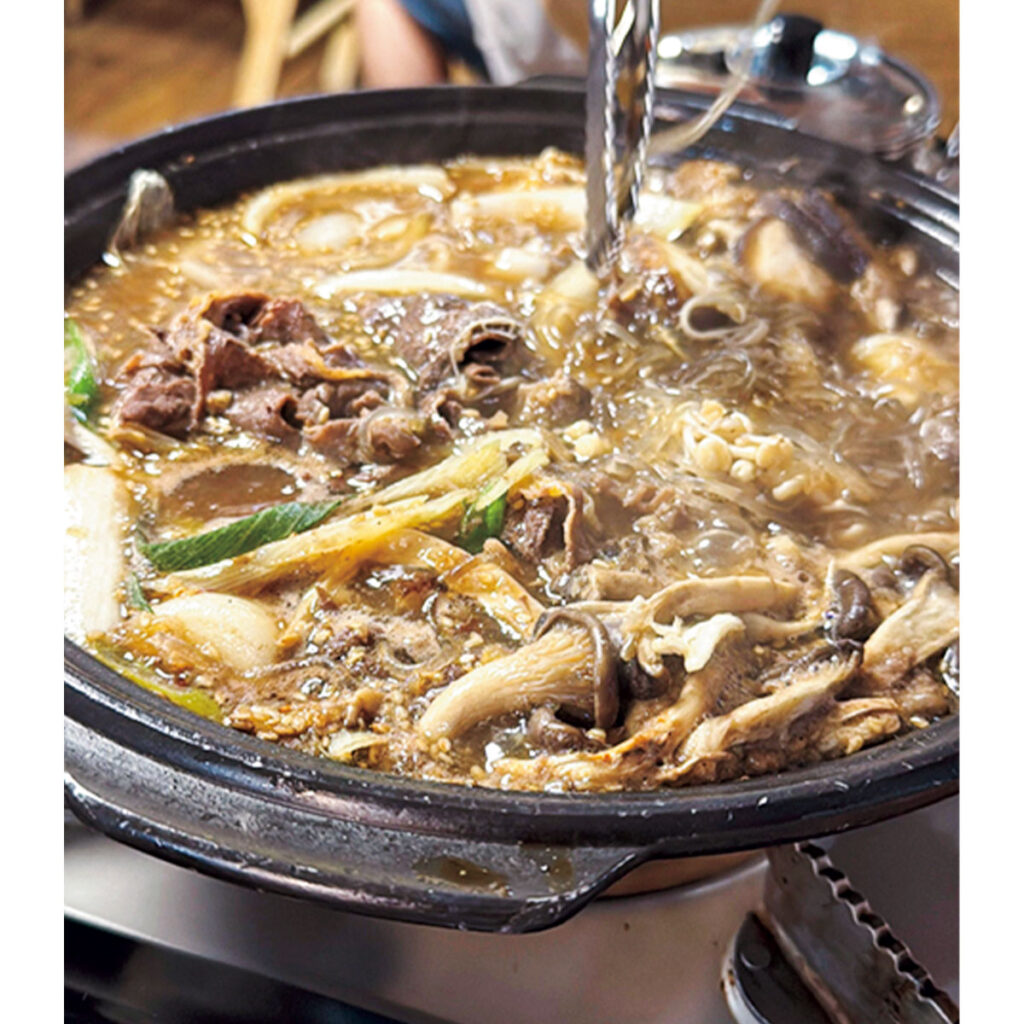 「月1ほどのスパンで行く韓国での定番メニューは、春雨と牛肉、野菜を煮込んだプルコギ鍋。野菜がたっぷり摂れるし、みんなでわいわいつつくのが楽しい♡」(青山絵子さん/会社員)
