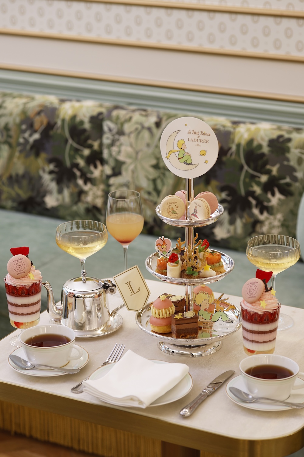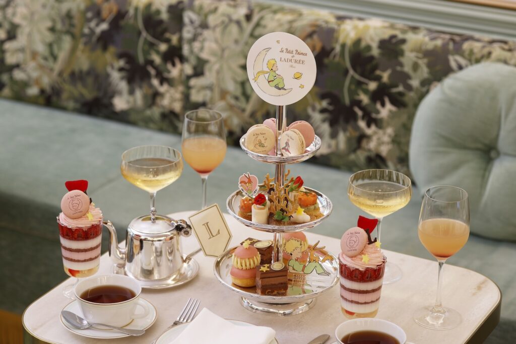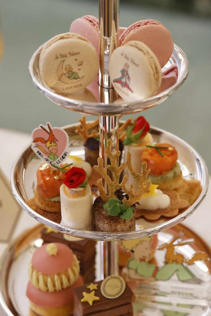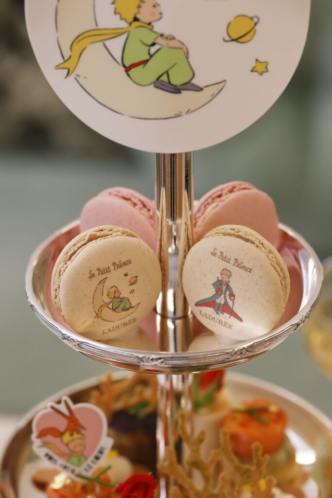 また、ラデュレ 日比谷店では、期間限定でアフタヌーンティーも登場。星の王子さまが描かれたプリントマカロンをはじめ、砂漠や星、王子さまのバオバブの木、王さまなど、物語の象徴的な登場人物にインスピレーションを得たマカロンやパティスリー、セイボリーを楽しめる特別なアフタヌーンティーを展開します。