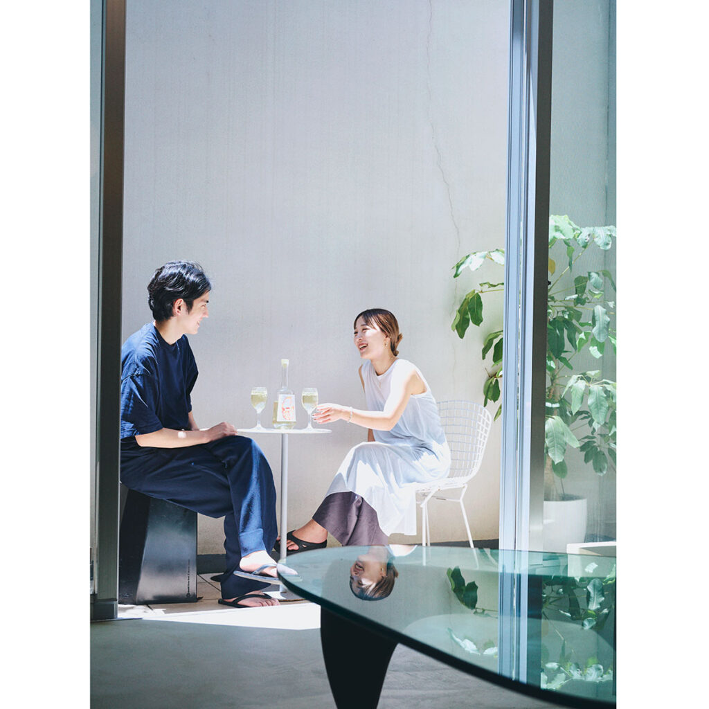 光が差し込むテラスでワインを味わういつも以上に開放的に話せる大切な時間
