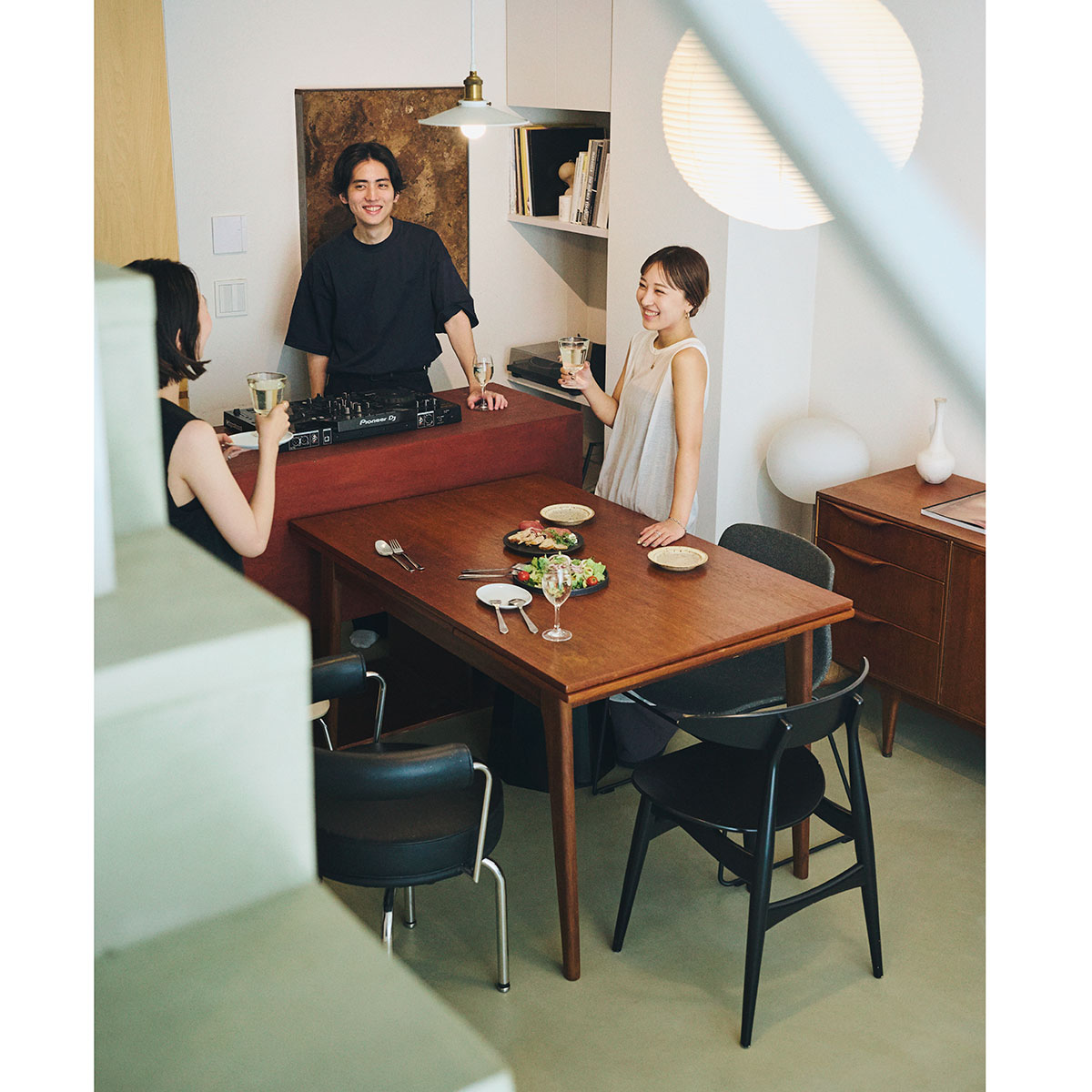 思い返せば、コロナ禍をきっかけに家で過ごす時間が増えて、もともとインテリア好きでしたがさらに拍車がかかったように思います。建築関係の仕事をしていた両親やDIY家具に囲まれて育った経験も、今の暮らしの土台になっているのかもしれません。私も彼も在宅ワーク中心なので平日は2人で過ごす時間がほとんどな分、休日はお互いの友人を招いて賑やかに過ごすのが好き。お酒や音楽好きの仲間が集まり“人と人を繋ぐような場所”であれたら嬉しいです。