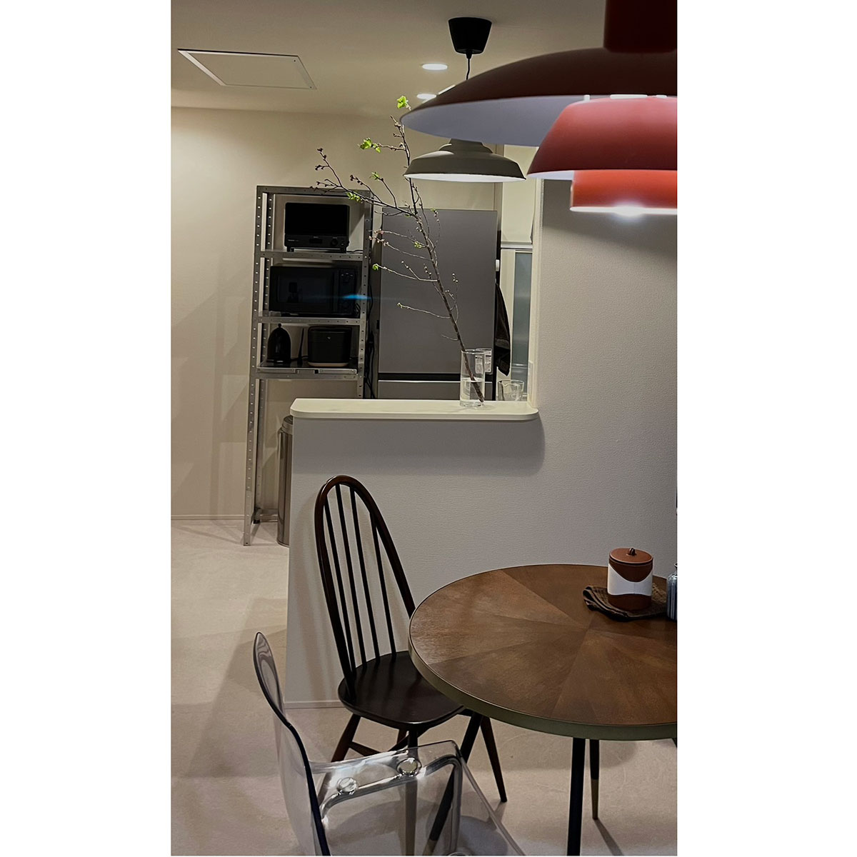 「生活リズムが合わないので夜少しでも一緒にリラックスできる空間が大事。2人で悩んで買ったルイスポールセンの照明は、目に入るとインテリア欲が湧いて話が弾む!」