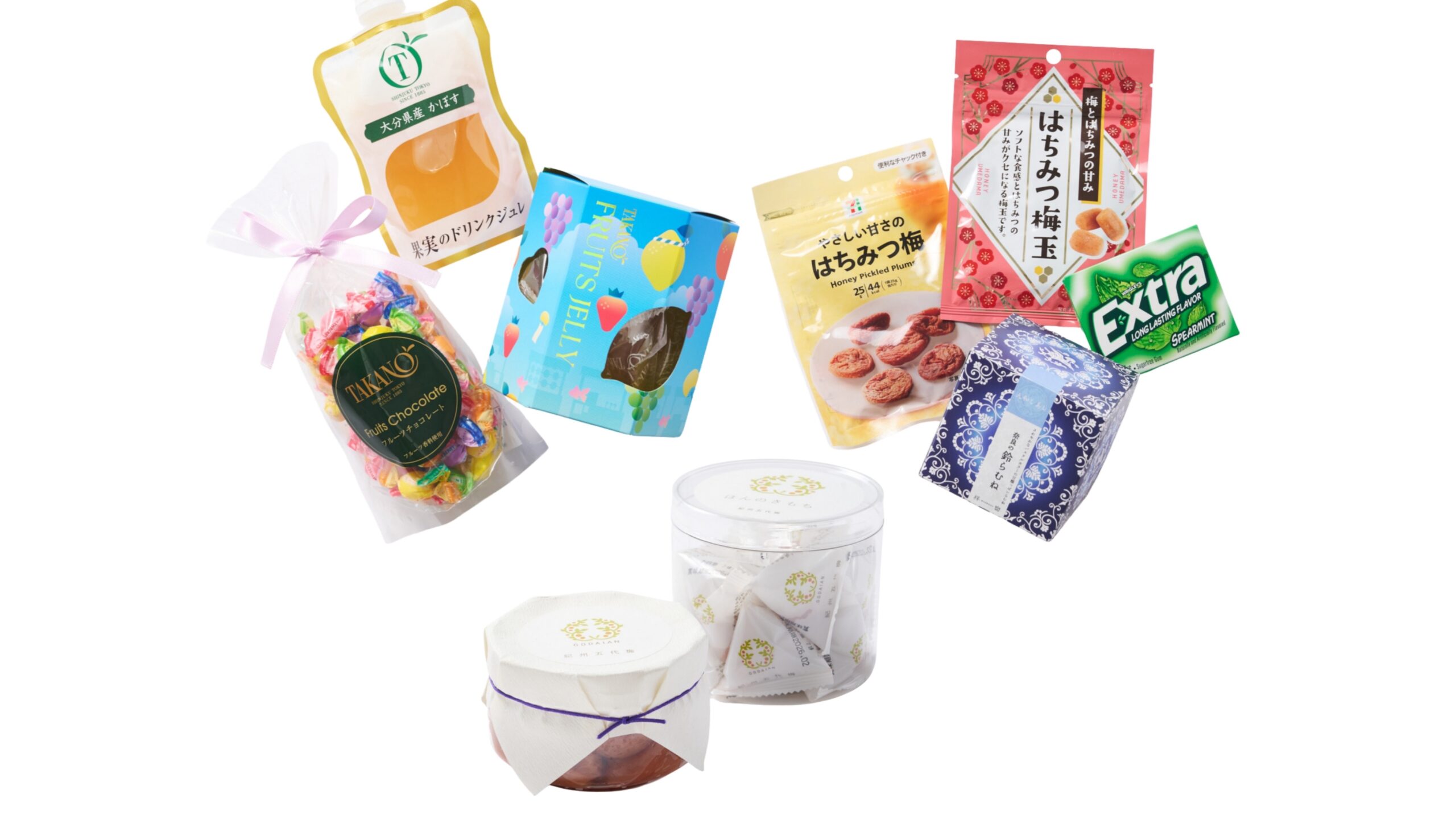 「新しいお菓子にあまり挑戦しないタイプなので、お気に入りをずっとリピートしています。定番で必ずストックしているのが、梅干しのお菓子。小粒で食べやすいのに1粒で満足感があります。夏はゴルフに持っていくことも多く、塩分補給になるので一石二鳥。どこでも買える手軽さもポイント。鈴ラムネは奈良の名物で、学生の頃から大好きなお菓子のひとつ。かむとすぐに溶ける軽さがクセになり、普段ラムネはあまり食べないですが、これは別格です。家にストックしておいて、気分転換したいときにつまんでいます。長年リピートしているガムは、アメリカ製のEXTRA。味が驚くほど美味しくて、友達にすすめると全員ハマるくらい中毒性があります(笑)。空腹しのぎにもお口直しにも、ただ口寂しいときにも、と出番が多いお菓子ですが、日本では買えないので海外に行くタイミングで必ずまとめ買いしています」