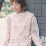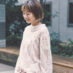 レースブラウス¥275,000(グリードインターナショナル)ピンクサテンパンツ¥23,800(マスター&コー/マッハ55リミテッド)ピアス¥39,600(リューク)パヴェリング¥170,500、ダブルフィンガーリング¥218,900(すべてプライマル)
