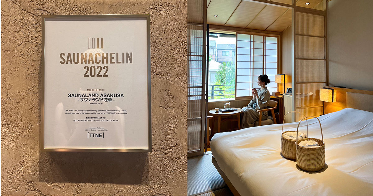 もんじゃなどの王道グルメを食べて浅草を満喫しつつ、ホテルでサウナタイム。ロウリュウや外気浴ができる整いスペースも完備。「サウナの後、そのまま眠れるのがサウナ付きホテルのよさだと思います」