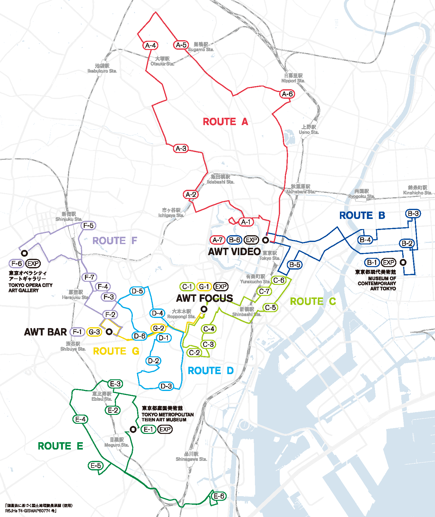 今年は各エリアをまわる「巡回便」7ルートに加え、買える展覧会「AWT FOCUS」(大倉集古館)と選りすぐりの映像作品を無料上映する「AWT VIDEO」会場、東京都現代美術館、東京都庭園美術館、東京オペラシティ アートギャラリーの4会場をダイレクトに移動できる4つの直行便の運行も。