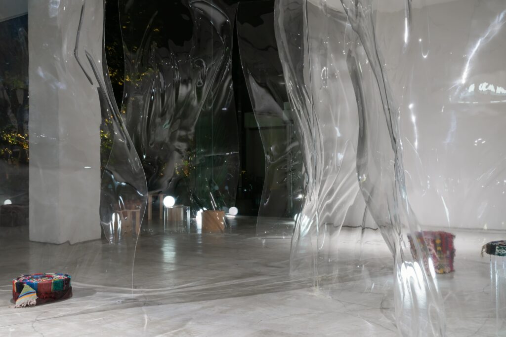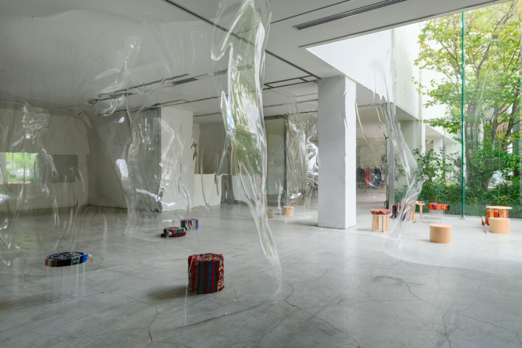 アクリルを使用し空間全体に透過、ゆがみ、反射といったレイヤーの重なりによって、多様な景色が生まれる空間に。