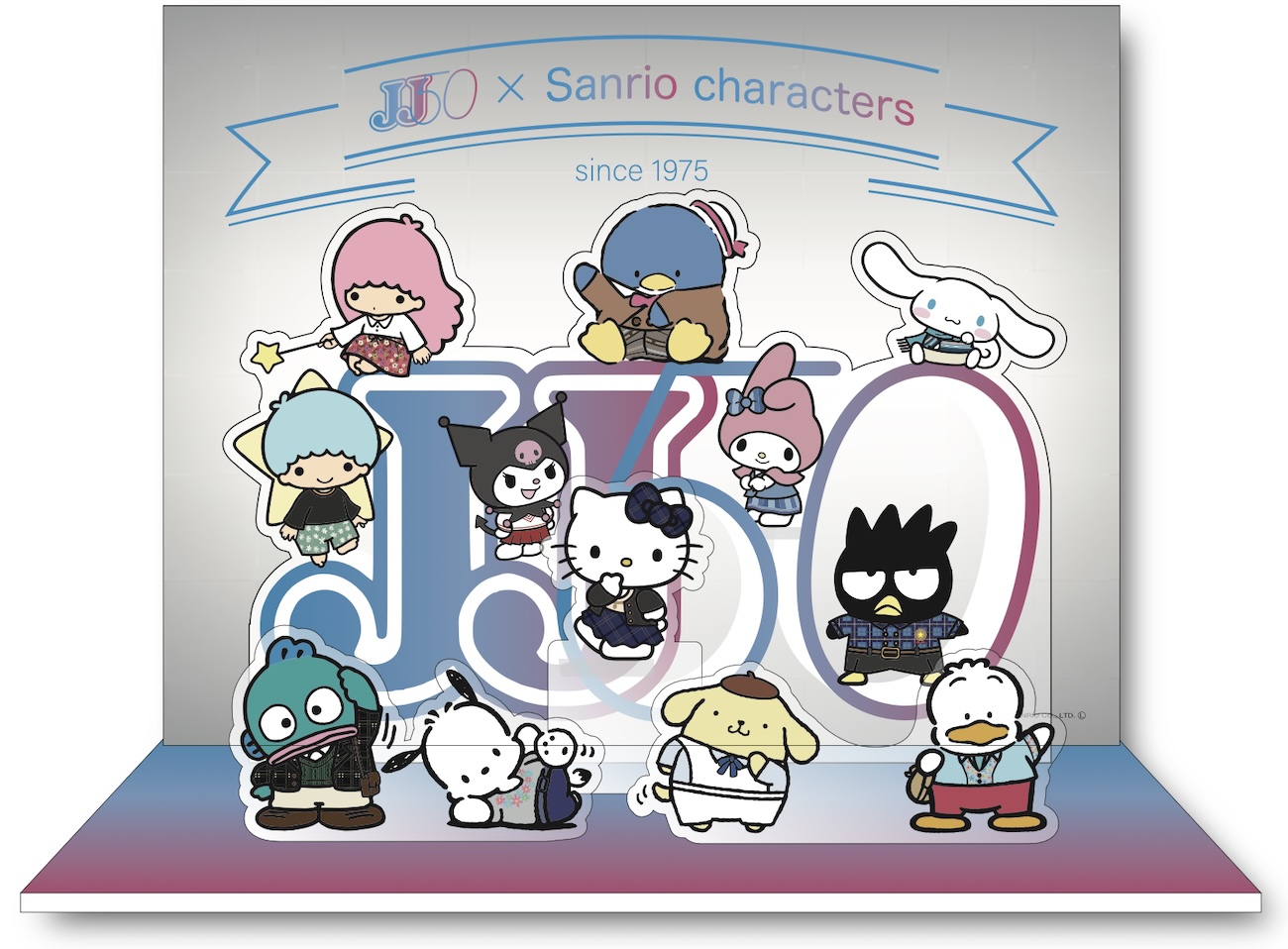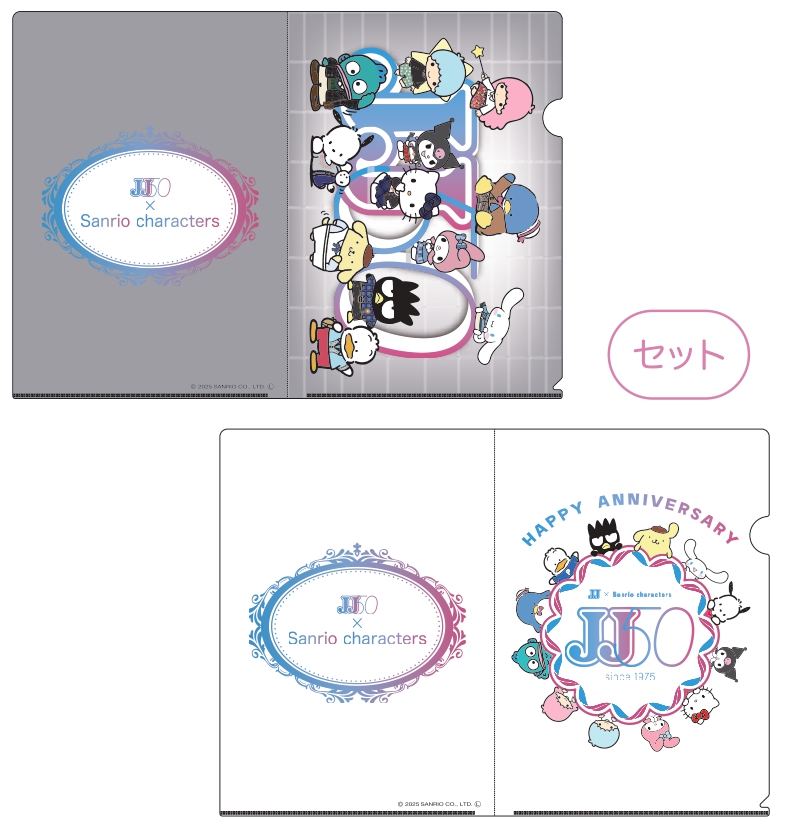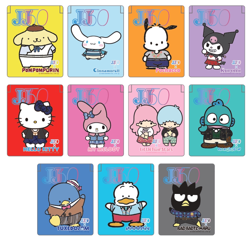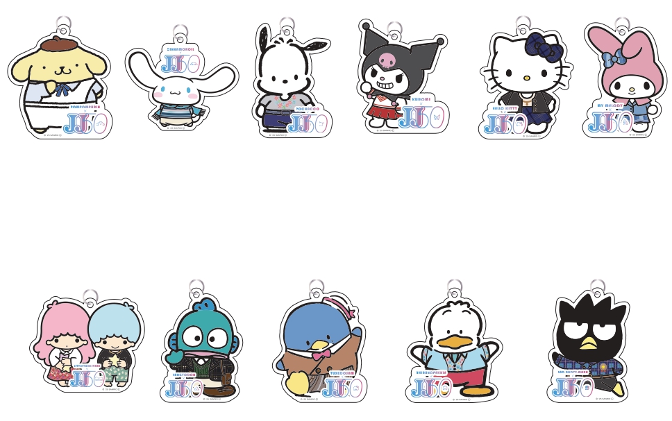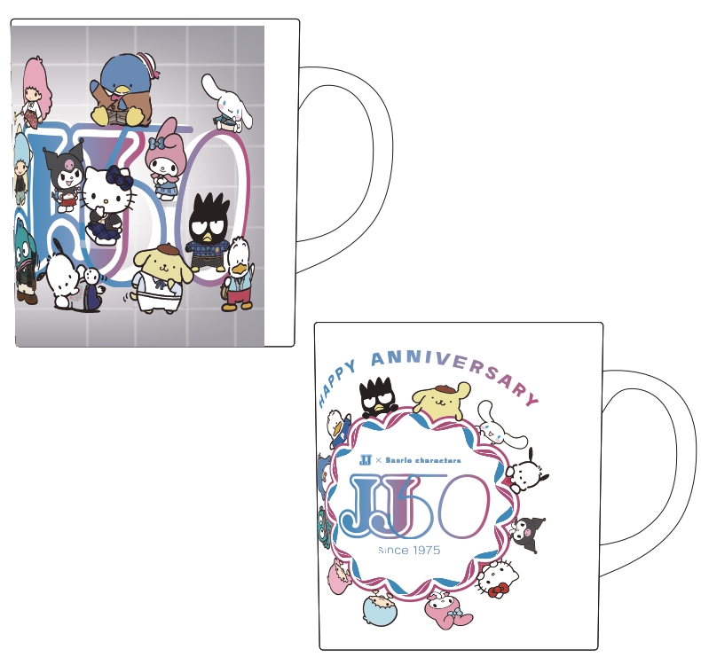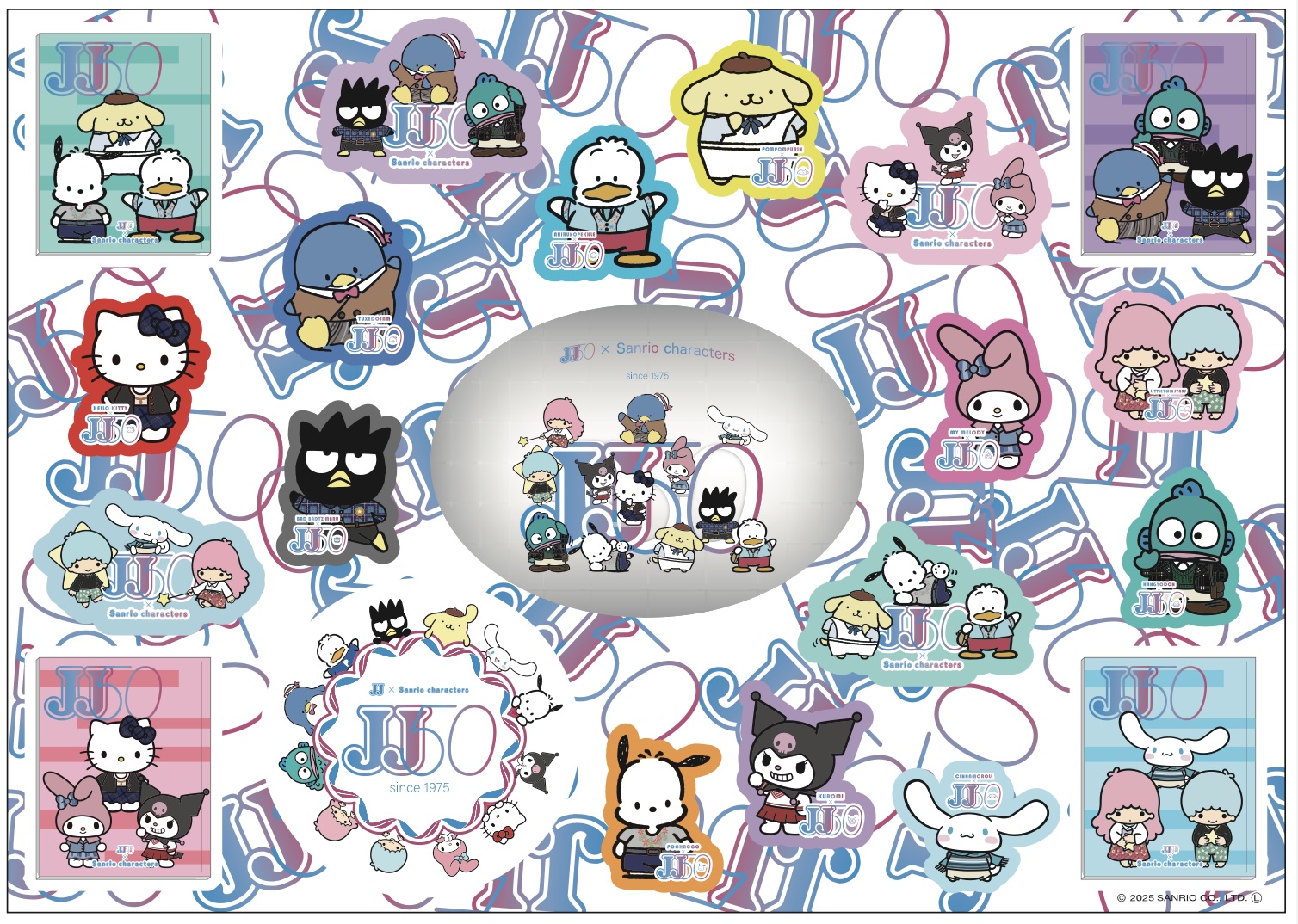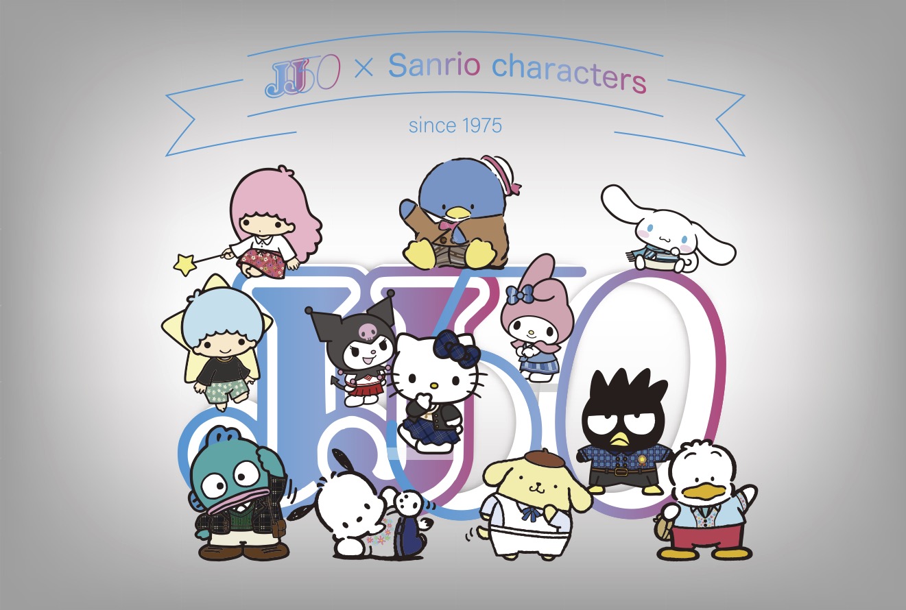 さらにキービジュアルに加え、JJ 創刊50周年記念ロゴをサンリオキャラクターズがお祝いするように囲むコラボデザインや、サンリオキャラクターズが「JJ50」のロゴと組み合わさったデザインを中心に全12アイテムを展開!