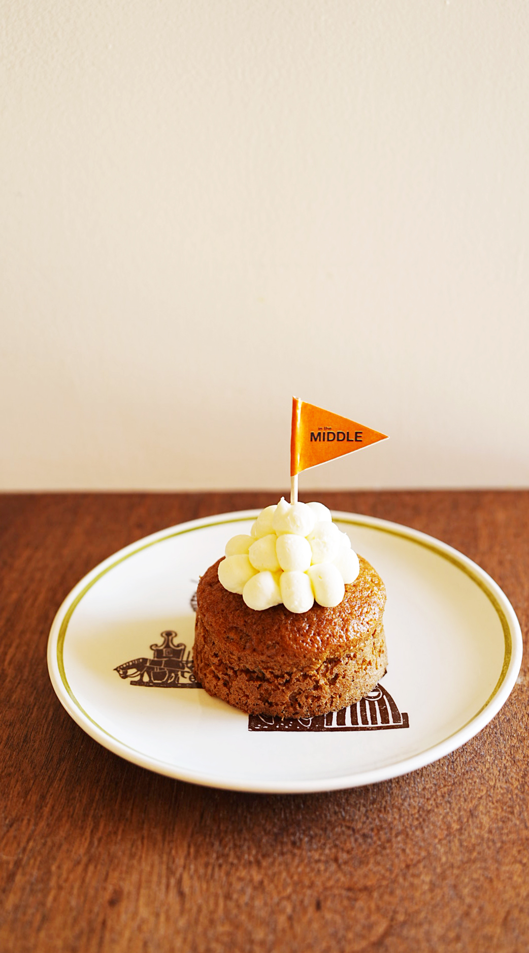 「in the MIDDLE」の注目メニューのひとつが、毎日ラインナップが入れ替わる手作りケーキ。なかでも人気No.1を誇るキャロットケーキは、人参とブラウンシュガーを使用した優しい甘みが特徴的。中にはクルミとレーズンがごろっと、上にはレモンの酸味を効かせたクリームチーズをON。たっぷりの美味しさが詰め込まれたキュートなビジュアルに心躍る!
