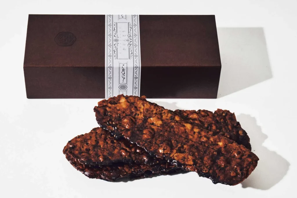 「カリッパリッと歯触りよい、薄くて大きなかりんとう。じんわりと広がる優しい甘さは、黒糖と素焚糖を合わせたもの。ほんの少しの醬油を加えることでコクを出しています。昔懐かしい素朴なお菓子を「HIGASHIYA」ならではの洗練されたスタイルで」(73 Showroom 主宰/河野なみこさん)