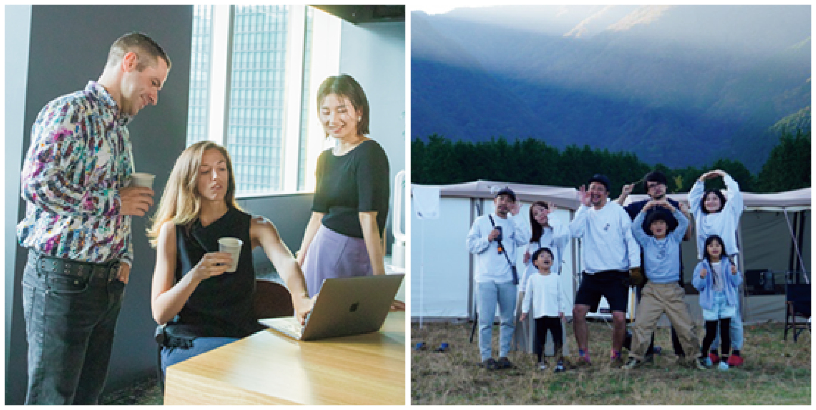(右)休日は、仕事繋がりで親しくなった友人家族とキャンプへ。趣味のカメラで撮影して、毎回アルバムを作るのも楽しみ。