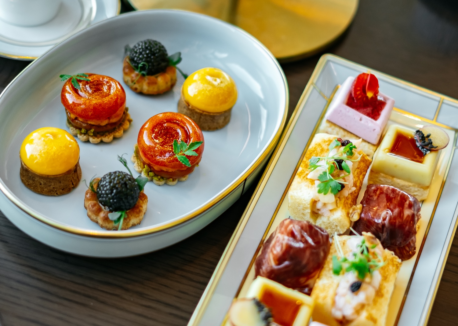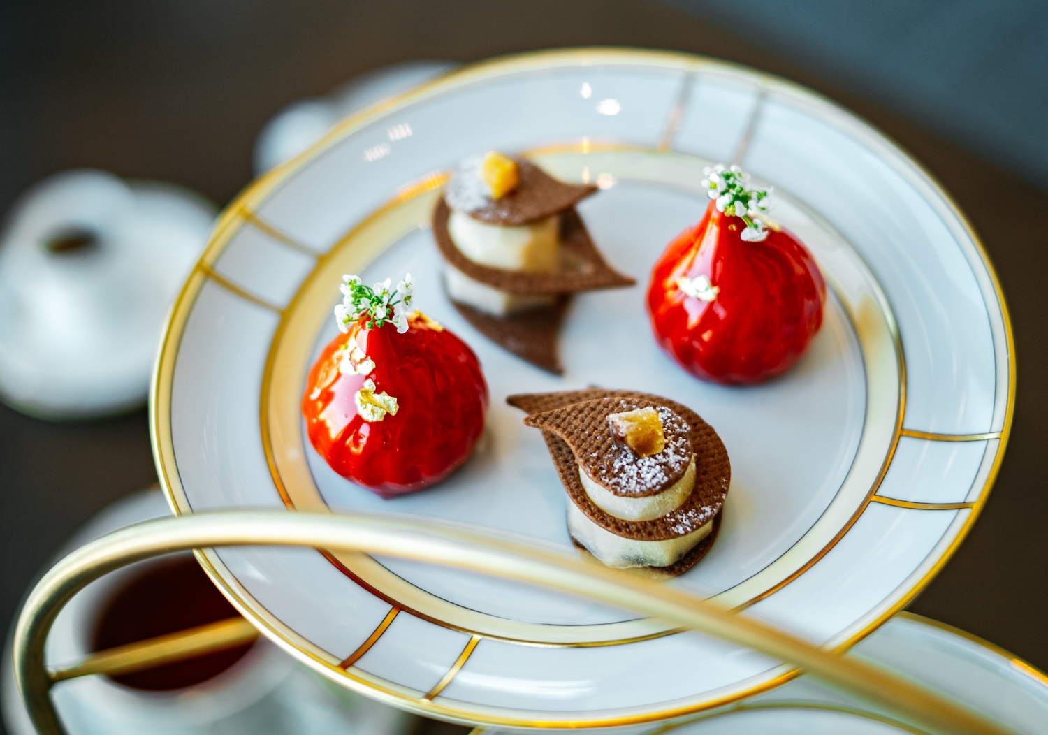 セイボリーには、アラカルトでも人気を誇るロブスターロールをはじめ、WAオシェトラキャビアとカルピスバターのフィナンシェサレ、香住蟹と南瓜のキッシュロワイヤルなど、贅を尽くしたラインナップが揃います。軽やかでありながらも奥行きのある味わいは、甘いものが得意でない人にも嬉しいポイント。大人のアフタヌーンティーとしての完成度の高さが光ります。