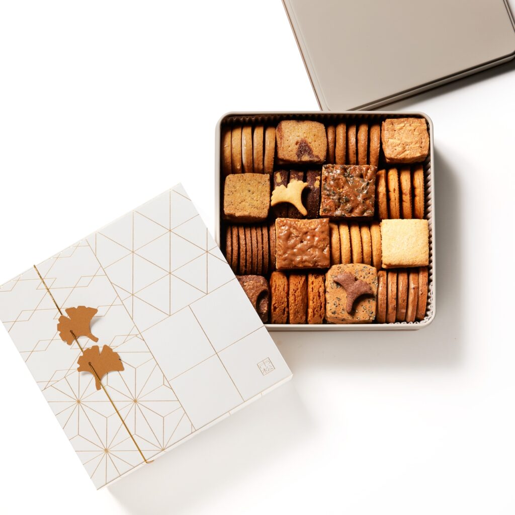 「とにかく見た目の美しさに惹かれます。外観とクッキーの中にあしらわれた銀杏や、市松模様に詰められたクッキーたちは、開けた瞬間に特別感を感じます。大切な方へ、大切な場面で、お渡ししたい一缶です。味わいも口当たりが良く品があり、かつ16種類もあって次に何を食べようか心躍ります。サブレ・シトロン、アールグレイ、はちみつフロランタンなど、それぞれ個性があって最後まで飽きることなく楽しめるのも嬉しいポイント。銀杏型のサブレはホテルを象徴するモチーフとなっており、細部までこだわりを感じられる一缶です」(河野)