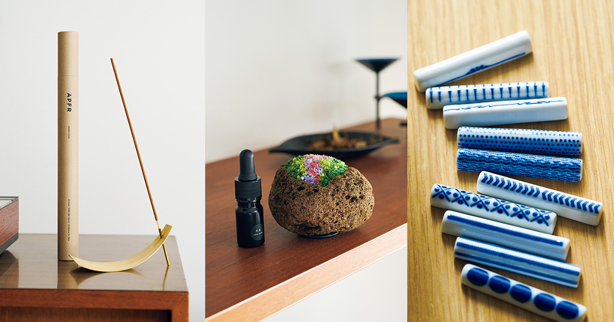 安土桃山時代の創業以来、430余年にわたり、日本最古の御香調進所として伝統を守り続ける薫玉堂。数々の名所や名物をイメージして調合された、ストーリーのあるお線香の中から、贈る相手にリンクする香りを選ぶのも粋。上から線香 丸の内1933、醍醐の桜、宇治の抹茶各¥2,750(薫玉堂)