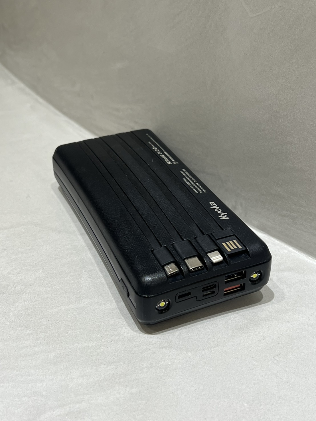 「アマゾンで購入したKYOKAのモバイルバッテリーは、USB・iOS・Type-Cの3種類のケーブルを内蔵していて、1台でどんなデバイスも充電できる万能タイプ。充電速度が速くPCまで充電できるほどパワフルな分、やや重さはあるのでオフィスに置きっぱなしにして使っています。スマホの充電を忘れたまま外回りや打ち合わせに出ることも多いので、そのまま持ち出して移動中に充電することも多々。仕事に欠かせない存在です」