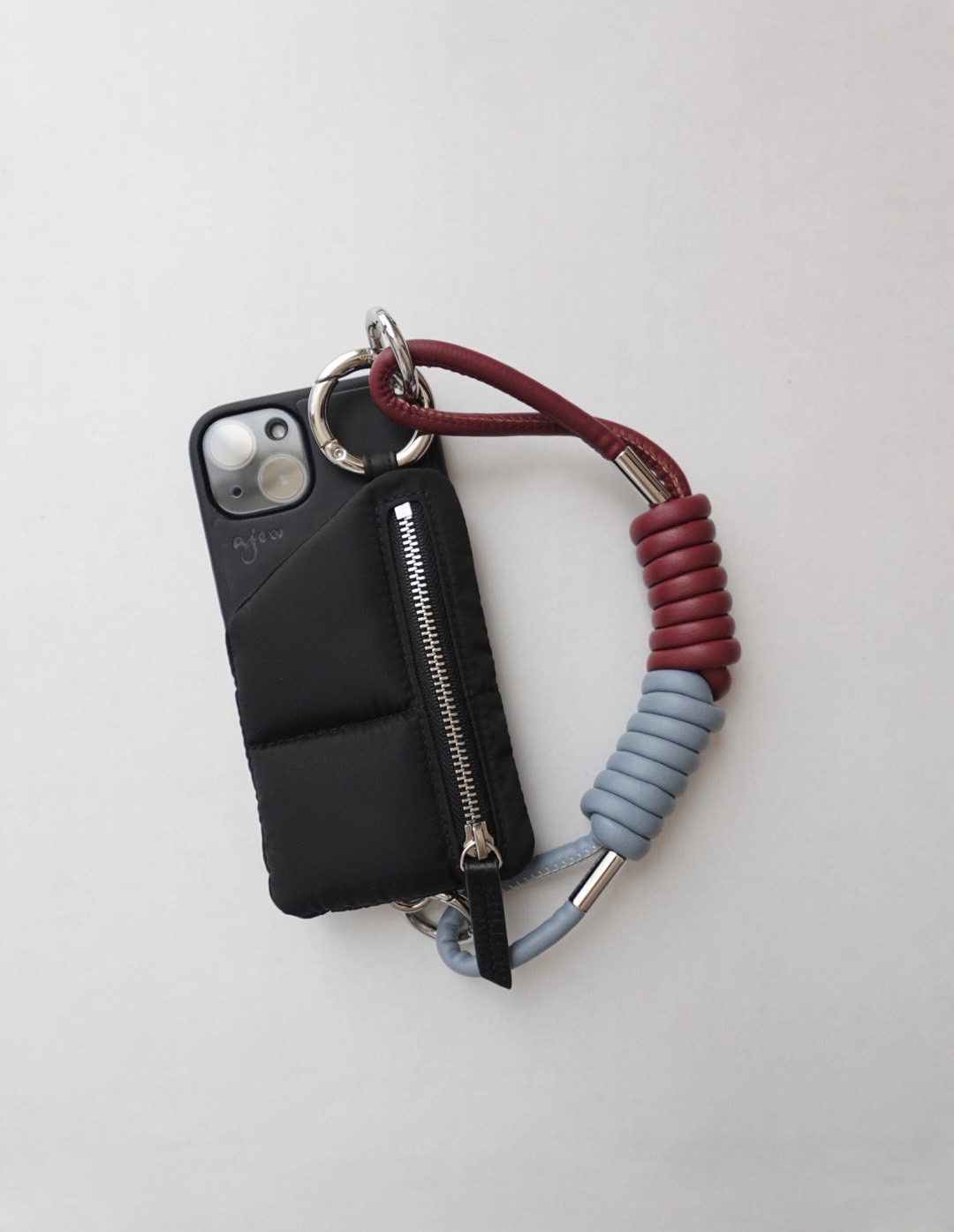 「ブラックのシンプルなajew(エジュー)のスマホケースに、ブルー×バーガンディ配色のストラップを合わせるのが今の気分。ファッションの差し色にもなるカラーリングにひと目惚れしました。ストラップ自体がチャームやキーホルダーのような存在感があり、バッグ風にも持てるので、1本あると便利。ajewはケースやストラップのバリエーションが豊富で、気分に合わせて買い替えています」