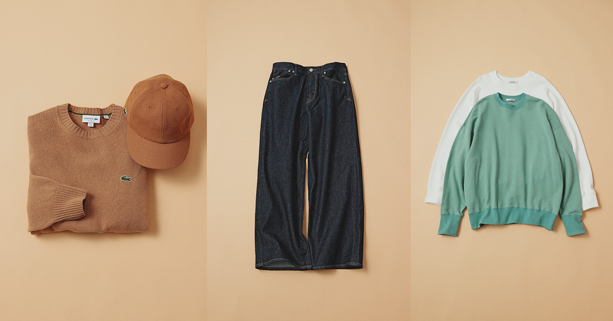 ラコステは長く着られる正統派ブランドの筆頭格。今季選びたいのはトレンドカラーのキャメル。ニット&キャップコンビなら、きちんとシーンにも旅やアウトドアにも頼れます。ニット¥20,900キャップ¥9,900(ともにラコステ/ラコステ お客様センター)