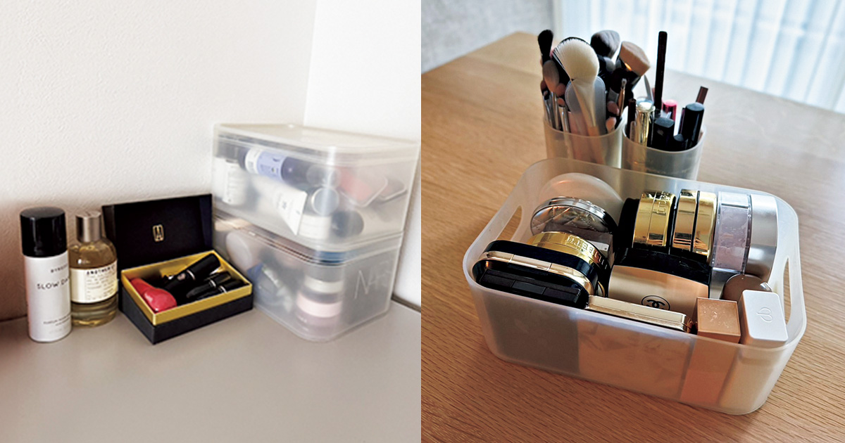「コスメは少数精鋭派でアイテムが少ないぶん、逆にパラパラ見えてしまうため、クリアボックスがあるとまとまりよく収納ができるので重宝しています。中身も可視化できて、サイズの違うアイテムごとに箱を分けて収納できるから助かっています」(安藤えりかさん/30歳・腸活サロンオーナー)