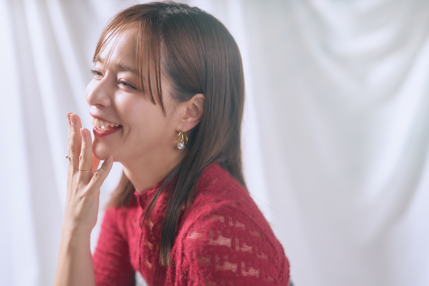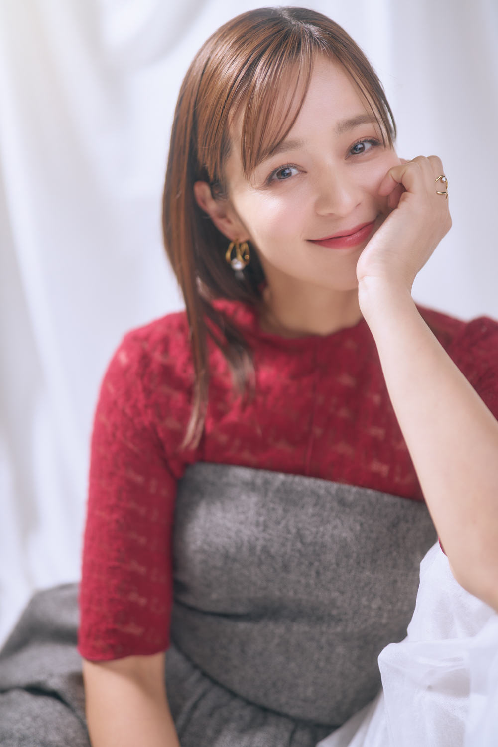 周りを見ていると、マッチングアプリで出会って結婚している方が本当に増えたな、という実感があります。先日も、40代のメイクさんと20代のスタイリストさんが、どちらもマッチングアプリで出会った方と結婚した、という話を聞いて、正直驚きました。ちょうどこの作品を撮っている時期だったこともあって、より印象に残っていて。私が「この仕事って、意外と出会いがありそうなのに、そんなにないんですか?」と聞いたら、「その考え方がもう古い」と言われたんです(笑)。今は「出会いがないから使う」のではなく、「出会いたいから使うもの」。同じ価値観や想いを持った人と効率よく出会うための、最初の一歩なんだそうです。