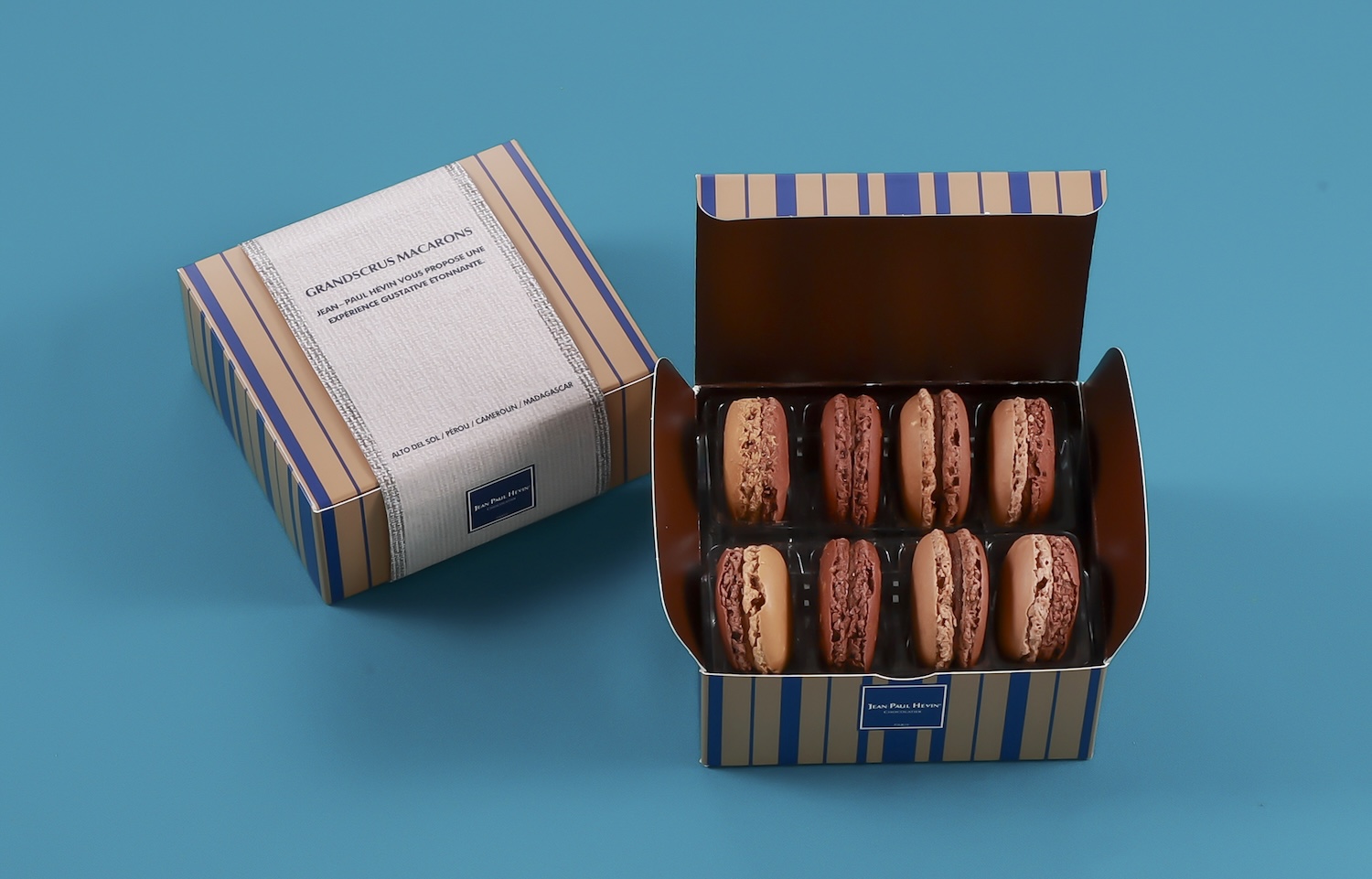 産地の異なるカカオを使用したガナッシュが楽しめる、グランクリュ マカロン4種「アルト デル ソル」「ペルー」「カメルーン」 「マダガスカル」を、計8個詰合せ。