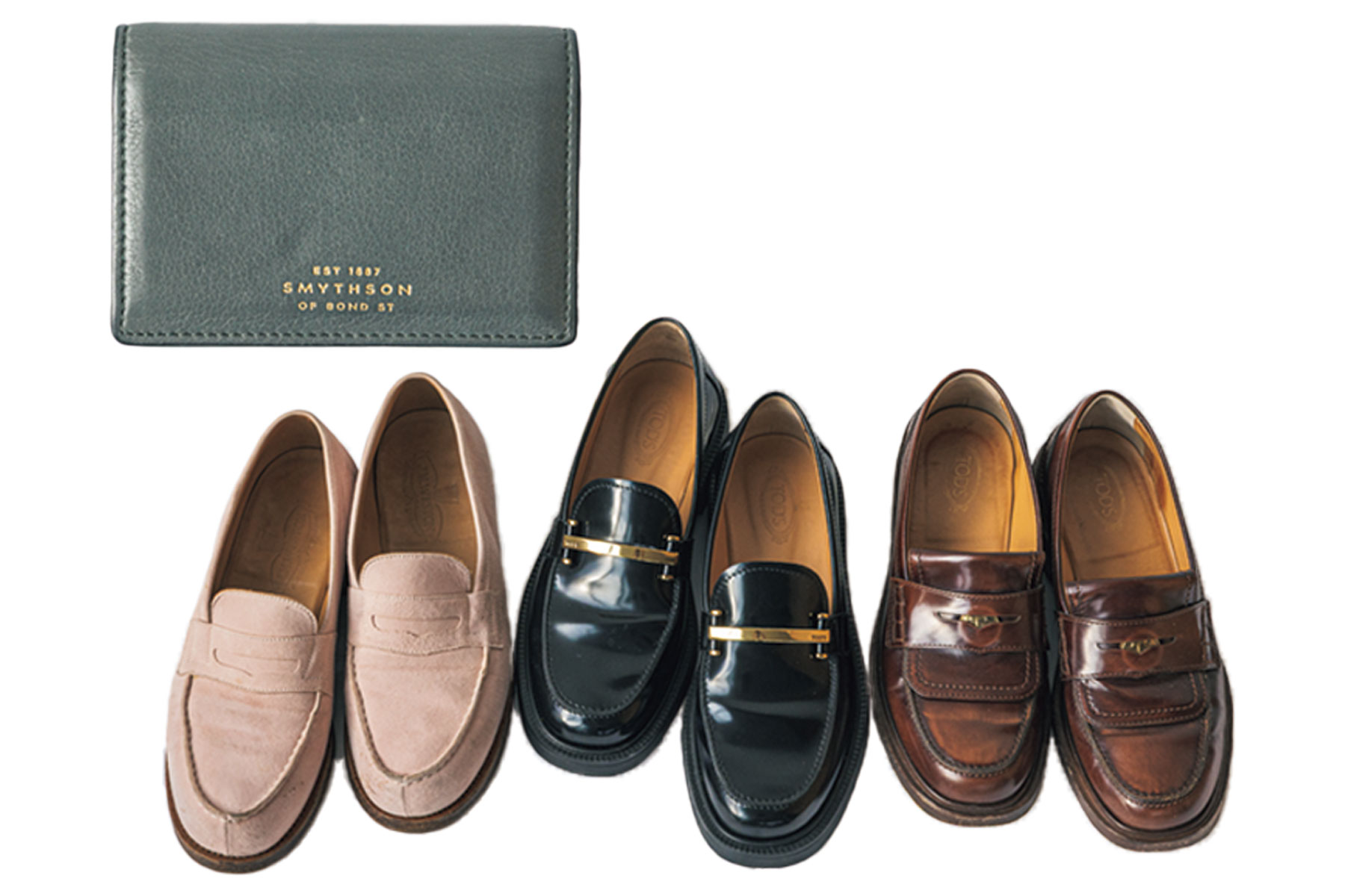 スマイソンの名刺入れは、イギリス時代に手に入れて10年以上愛用。毎日歩いて出社するため、きちんと見えて歩きやすいローファーが通勤の定番。最愛ブランドは、トッズとJ.M. WESTON。服装は自由ですが、マネージャークラスと会話する日は、ジャケットでキリッと整えます。