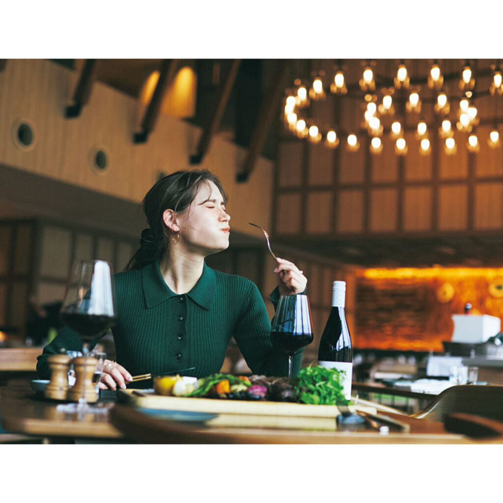 薪火で作り上げる肉&野菜料理、ピザ窯で焼き上げる本格ピザが楽しめるオールデイダイニング。ネイバーフッドな食材を活かした薪火イタリアンで宿泊ゲストに留まらず人気。ディナーで選びたいのは、ボリューム満点のTボーンステーキと長野県産の赤ワイン。