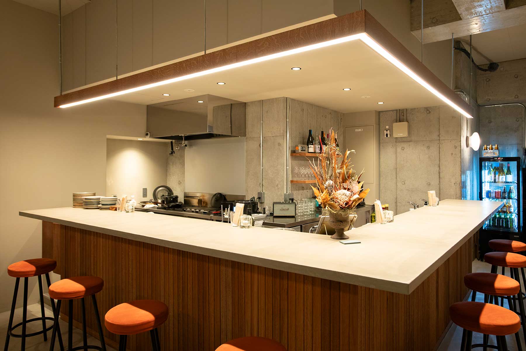 大通りから入る閑静な一角に登場したのは、タコスとタパス、ナチュラルワインが楽しめるこちら。厨房を囲むカウンターがメインの空間では、タコスをつまんで軽く一杯というカジュアルな使い方もOK。とは言え、店主・田副尚樹さんが手間を惜しまず、アイデアと季節素材を効かせたタコスは一つ、もう一つと手を伸ばしたくなるはず!