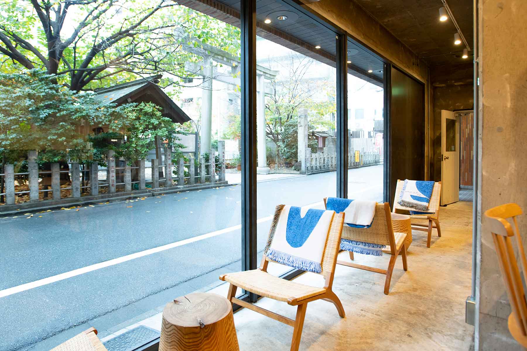 春先にはミモザが咲き誇る蔵前神社の目の前、一面のガラスファサードが開放感をもたらしています。1Fにはロースター、2Fにはセントラルキッチンを設け、焙煎したコーヒーや焼き上がるクッキーの香りが漂うのも心地よさの理由。好きなフレーバーの一杯を選び、ヴィジュアルも◎なクロワッサンサンドや焼き菓子でブレイクタイムを。