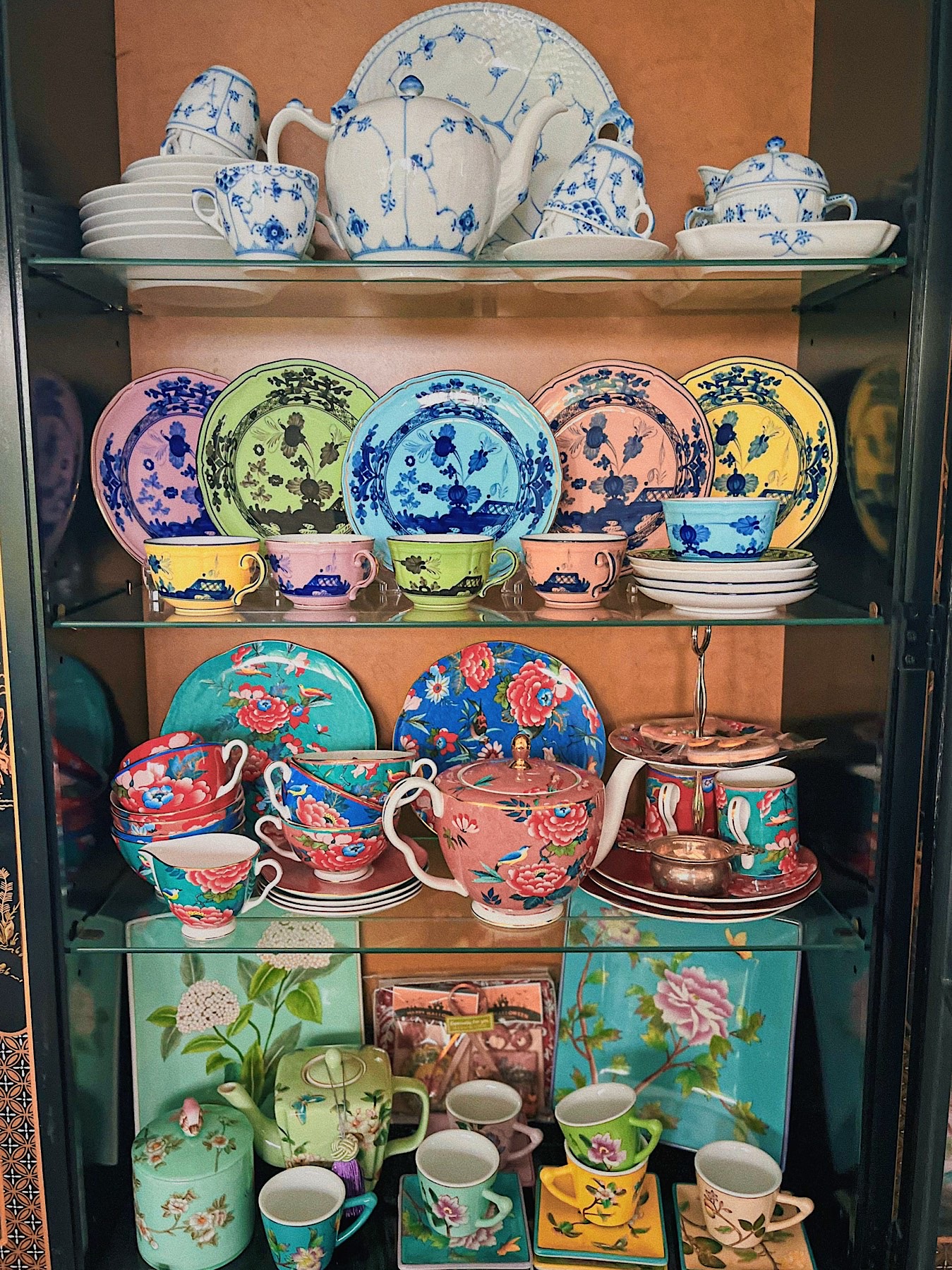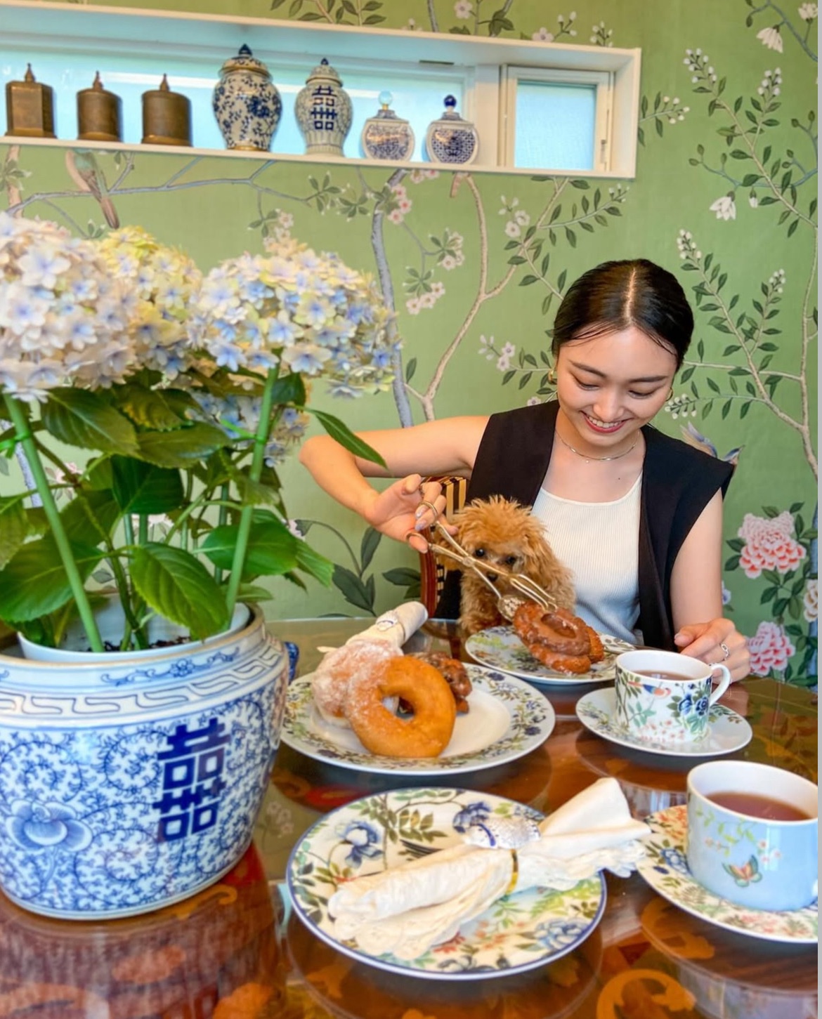 「シノワズリや骨董、西洋食器など、母の影響で器には幼い頃から親しんできました。母に連れられてお店を巡り、少しずつ集めてきたものばかり。旅先で出会った掘り出し物も多く、器を見るたびに、そのときの景色や空気まで思い出します。中でも思い出深いのは、タイを訪れた際、ホテルのアフタヌーンティーで使われていた ウェッジウッド。その時間が忘れられず、母へのプレゼントに選びました。気づけば、私自身もすっかり魅了されています」