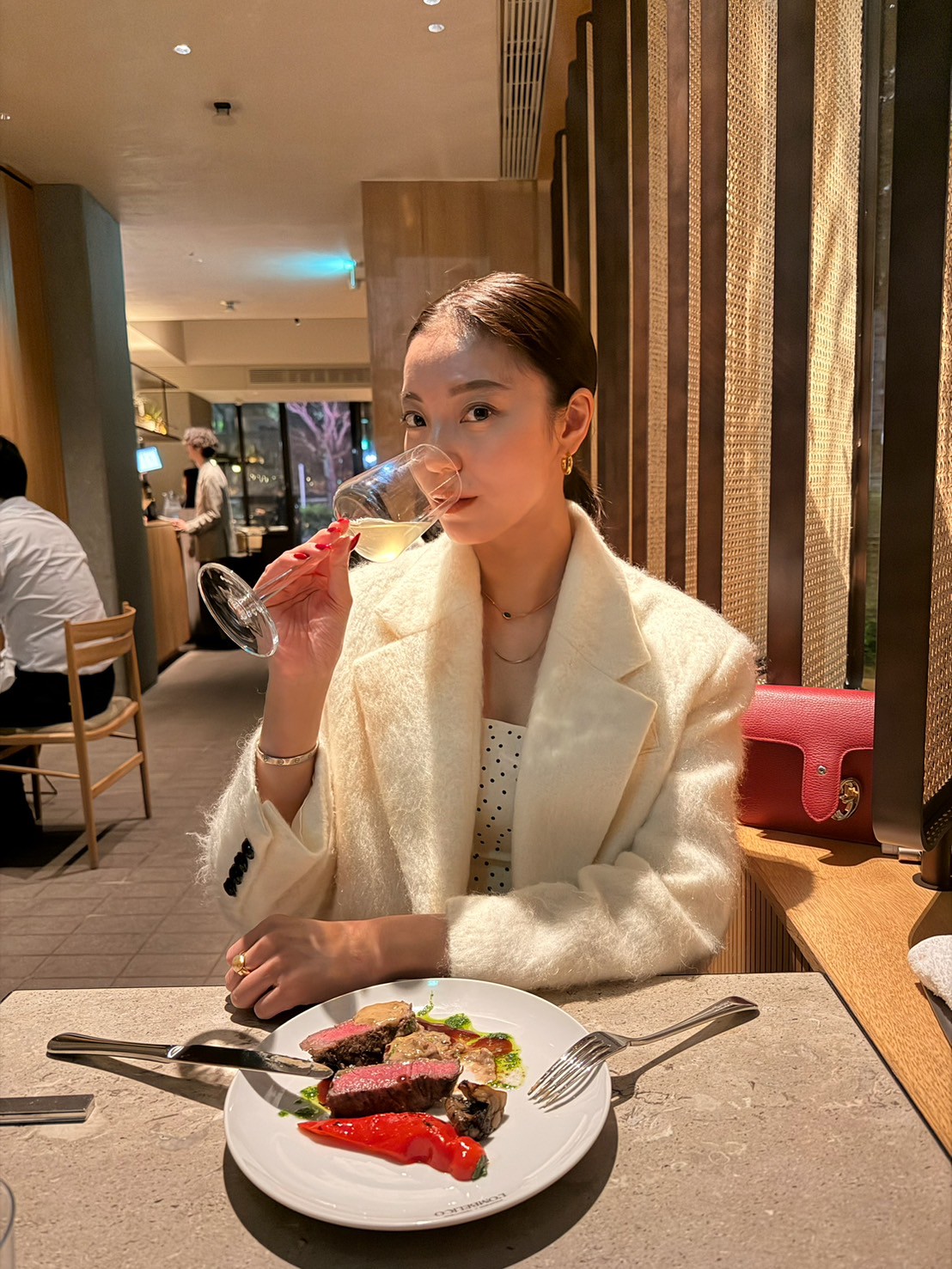 「週末は、家族や友達とレストランで過ごす時間が楽しみ。気になるお店を見つけては訪れたり、グルメ情報をチェックするのも好きです。最近はビストロ巡りにハマっていて、カジュアルな雰囲気のお店で友達と女子会をすることも多いです。スポーティな服装でも気軽に行けるところも魅力。お祝いや記念日には、少し特別なレストランで食事をすることもあります。オーストラリアで過ごしていた頃から、特に好きなのはブランチの時間。今でも友達とコーヒーを飲みながらゆっくり過ごす時間を大切にしています」