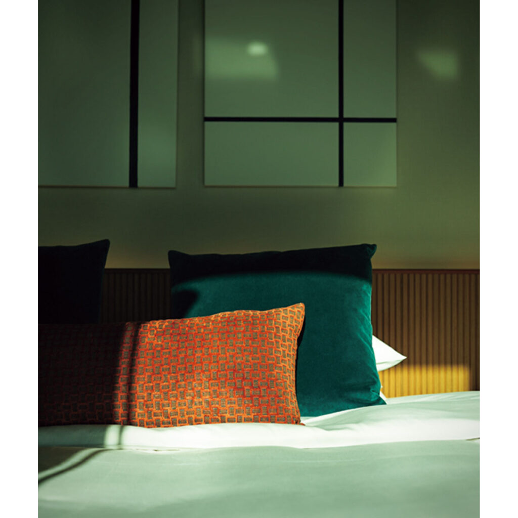 色使いも印象を左右させる大きな要素。THE AOYAMA GRAND HOTELは、反対色ながら彩度を揃えた色使い。「余白を埋めるために置いたアートが、逆に余白をきれいに見せているのも印象的です(Rikaさん)」。