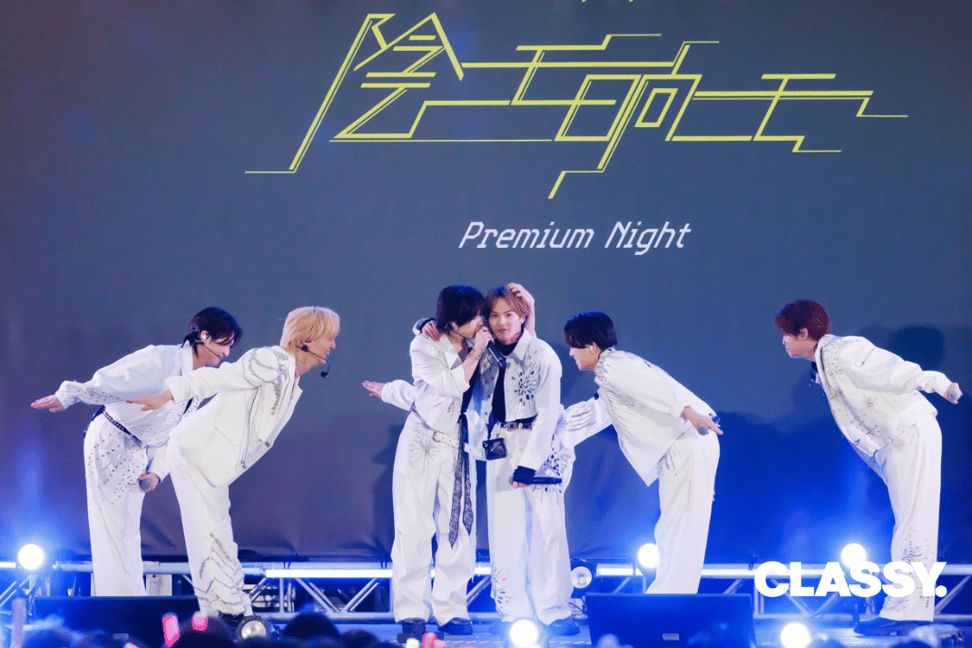 ひんやりとした風が吹く中、宮近さんは「僕たちはまだまだ上を目指しているので、ぜひ皆さんの力を貸してください」と、ファンへの深い感謝とこれからの決意を力強く語ります。配信の同時視聴者数が28万人を超えるという驚異的な数字にメンバーが驚喜する中、宮近さんの「まだまだパフォーマンスあります!」という合図で後半戦へ。寒さを吹き飛ばすような熱いステージに向けて、メンバーとファンの心は再び一つに!