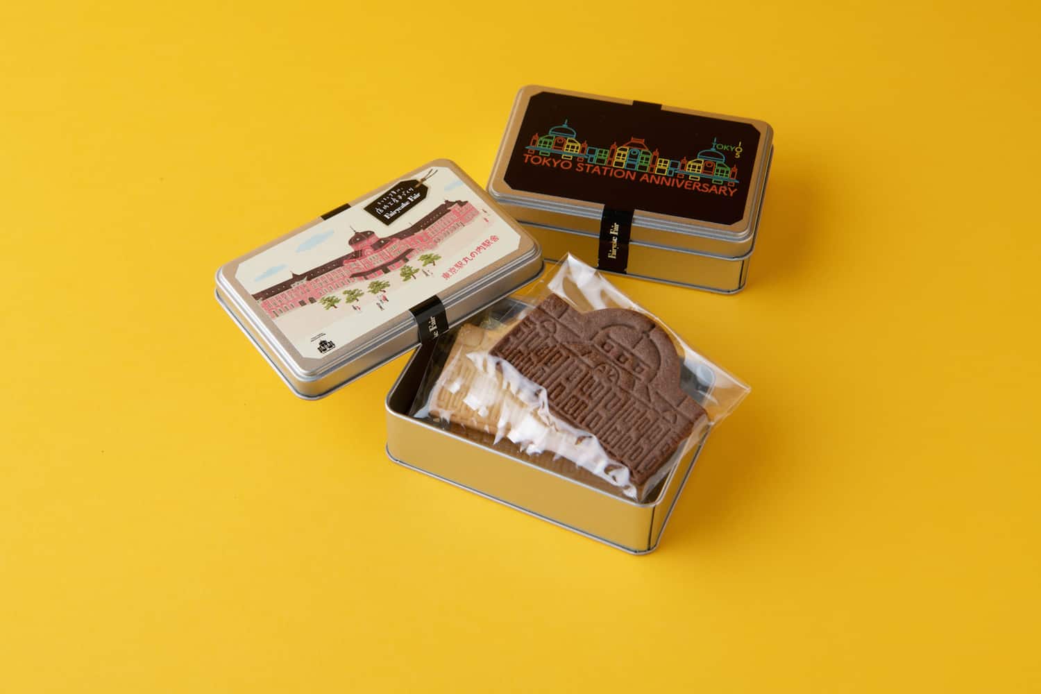 「どこか懐かしい味のする甘さたっぷりのクッキーは店内の工房で手作りされているそう。老若男女問わず美味しくいただいてもらえます。東京駅丸の内駅舎をかたどった形に、駅舎イラストのパッケージ缶入りでグランスタ限定。レトロなデザインの缶は、食べ終わったらそのままプレゼントに。限定缶には3枚しか入っていませんが、他に丸の内駅舎の箱パッケージで10枚入り、16枚入りもありました」バター2袋カカオ1袋 3枚入り 840円