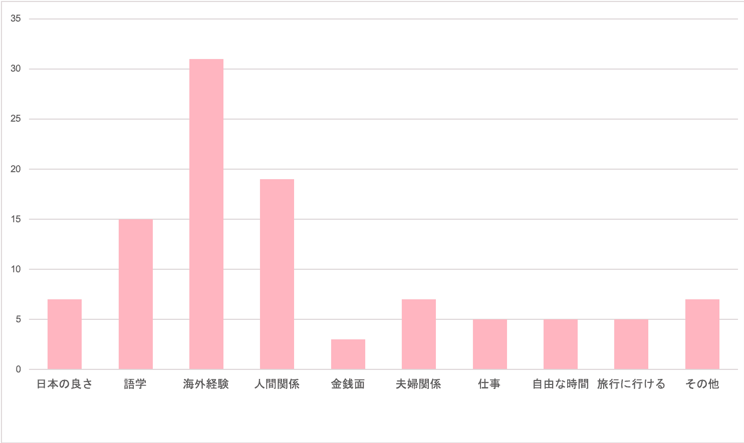 意外にも少なかったのが、【金銭面】に関する回答。なんと、3名だけでした。近年では、駐在になったことでの金銭的なメリットは、思いの外少ないのかも!?