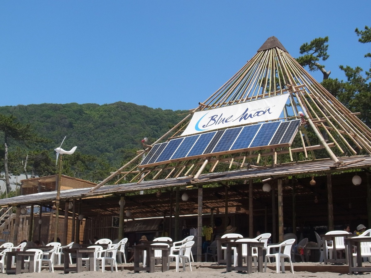 少し大人っぽい雰囲気の一色海岸にある老舗といえば、この「blue moon」。とてもキレイでオシャレな海の家です。南国風の雰囲気で、三角テント(?)のような外観が目印。地元葉山で採れた野菜や海の幸を使用した料理も評判ですが、CLASSY.読者の女子に嬉しいのが、SPAが併設されていること。