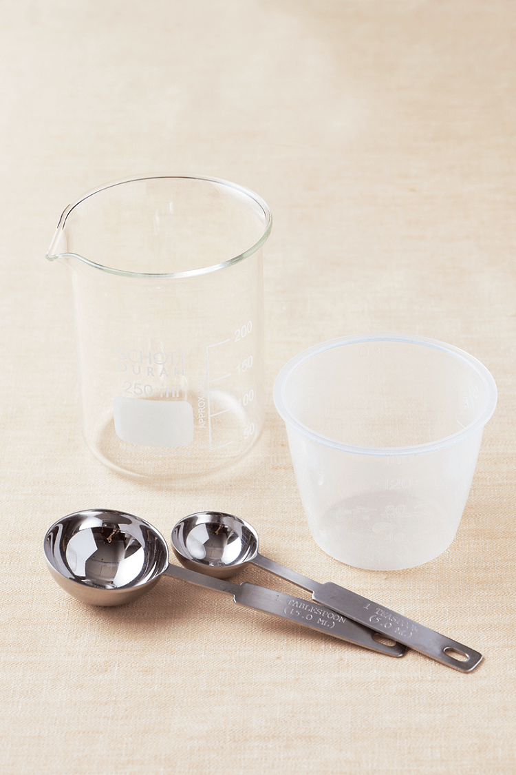 液体の場合はこぼれ落ちない程度、粉末の場合はすりきり(山盛りにすくってからへらなどで縁から平らにする)に量ります。