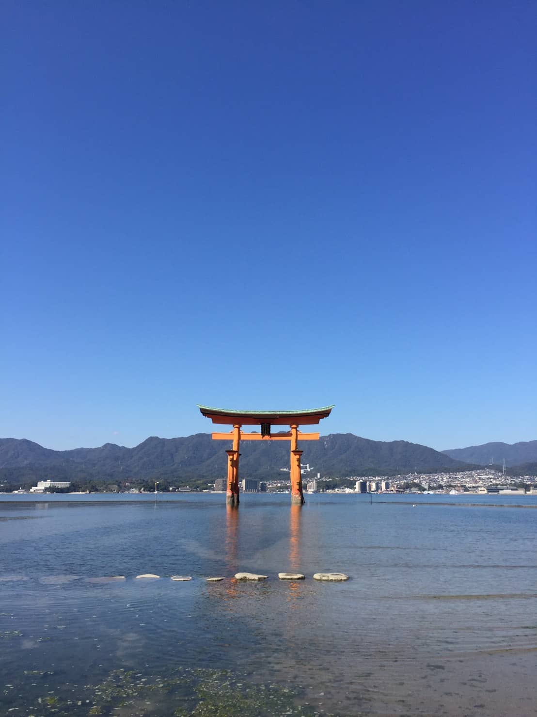 海に浮かぶ大鳥居や海上社殿が神秘的なスポット。松島、天橋立と並ぶ「日本三景」のひとつとしても有名。キラキラと輝く水面、神聖な朱赤の大鳥居、澄み切った青空のロケーションで、おうちにいても晴れやかな気持ちになれるはず。