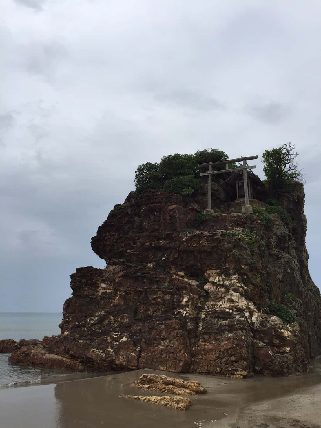 豊玉毘古命(とよたまのひめみこと)を祀る小さな祠がある弁天島は「べんてんさん」と呼ばれ、地元の人たちから親しまれています。旧暦10月10日に全国の八百万の神々が集まり、神様のサミットが行われると言われているパワースポットを背景にすれば、運気アップ間違いなし!