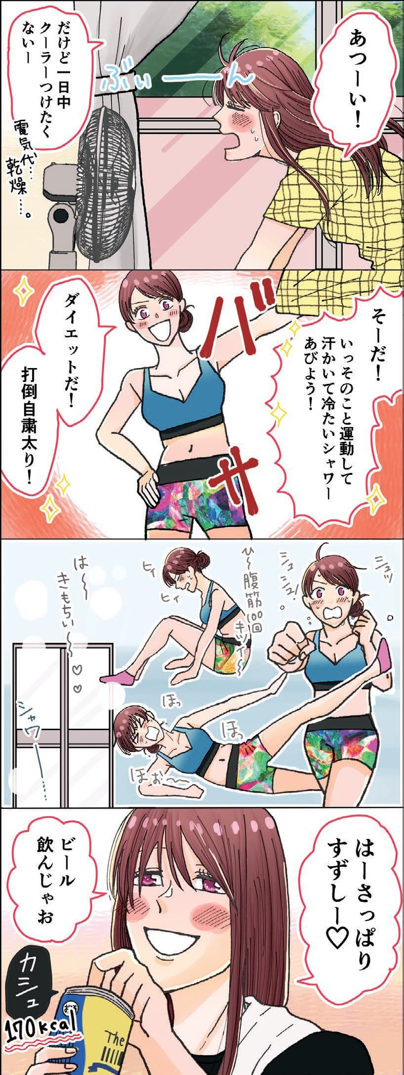 打倒コロナ太りのはずが…【ままならない今日この頃】第97話 消費カロリー<ビール#OL4コマ劇場